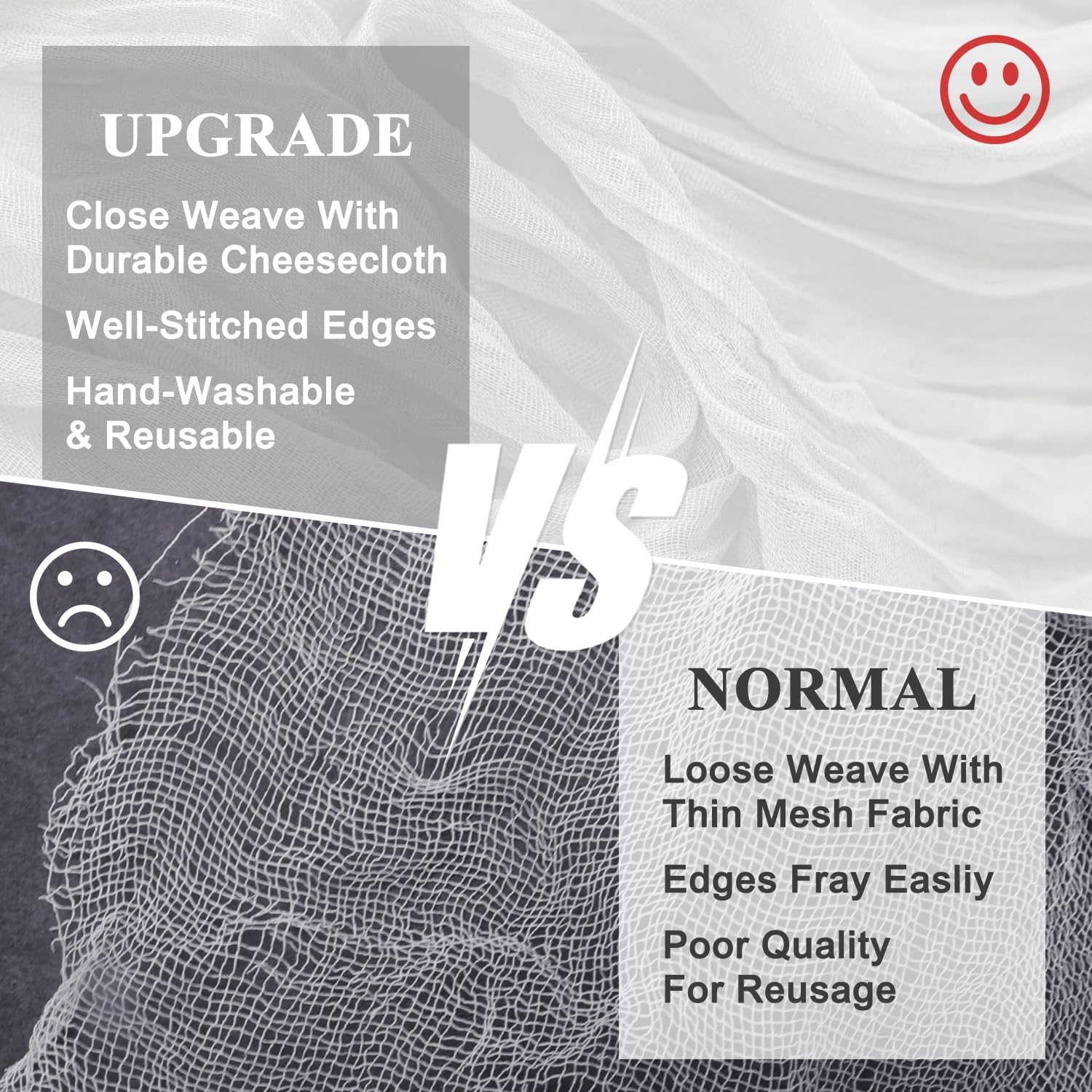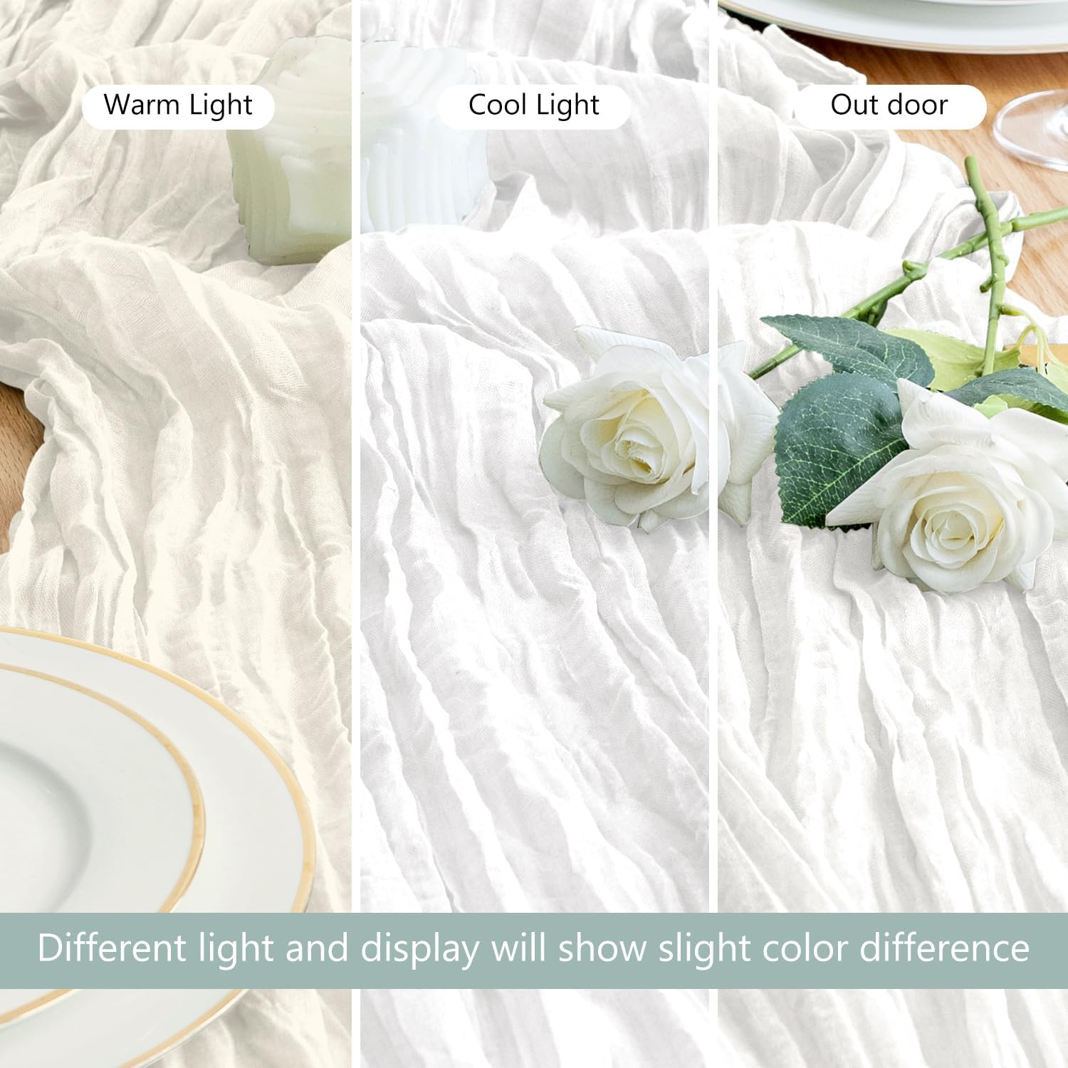 • 【Cheesecloth Table Runner】 Size: 35" W x 120" L. You will get 1 piece 10FT length cheesecloth table runner. The sheer rustic table runner is long enough to span a large table and drape gracefully across the table. It will gently sway in the wind, adding a romantic atmosphere to your occasion. These eye-catching gauze table runners are ideal for arranging an elegant, stylish tablescape.