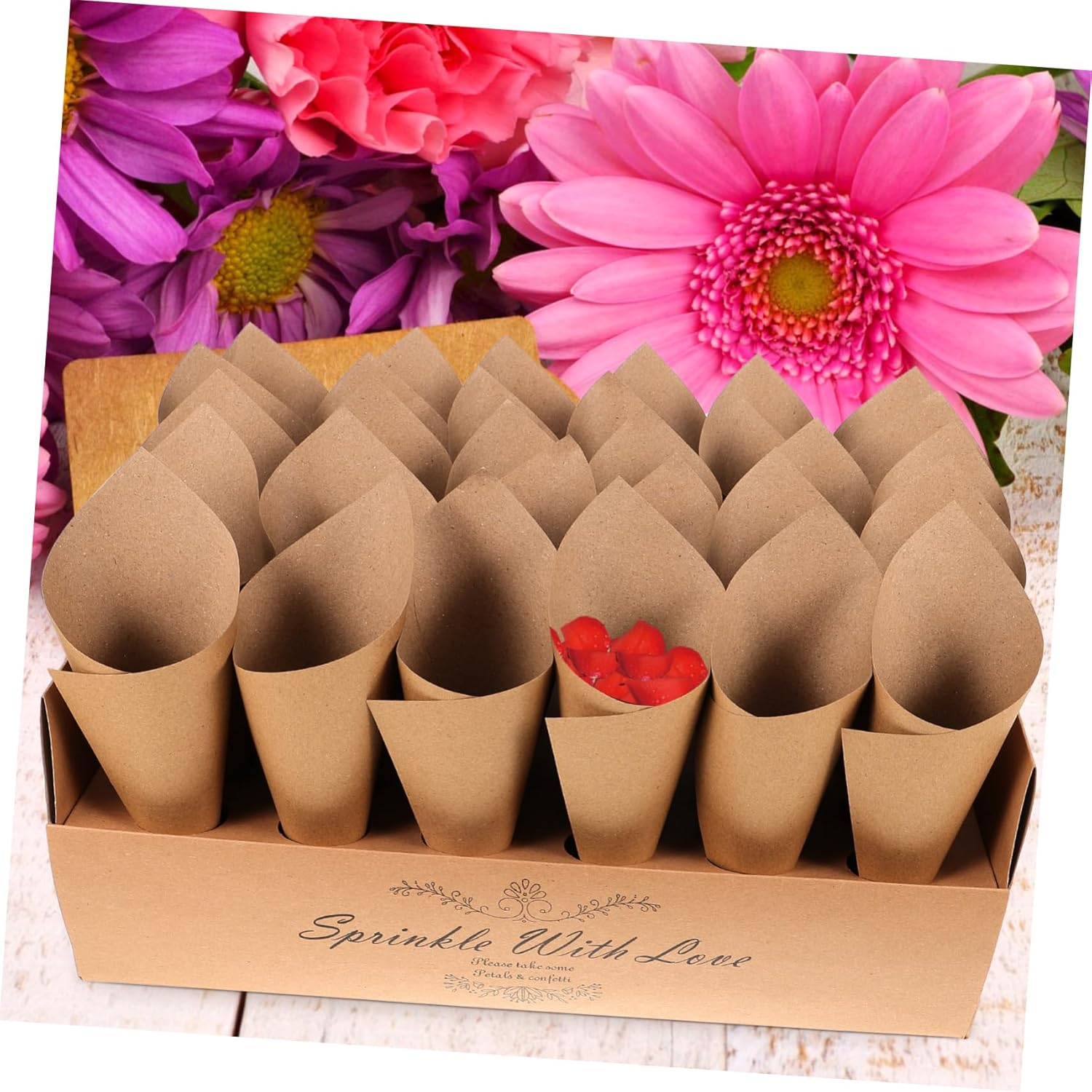 CIMAXIC 30-hole Kraft Paper Cones Box Set Wedding Party Favor Box Confetti Cone Holders for Decorative Party Favors