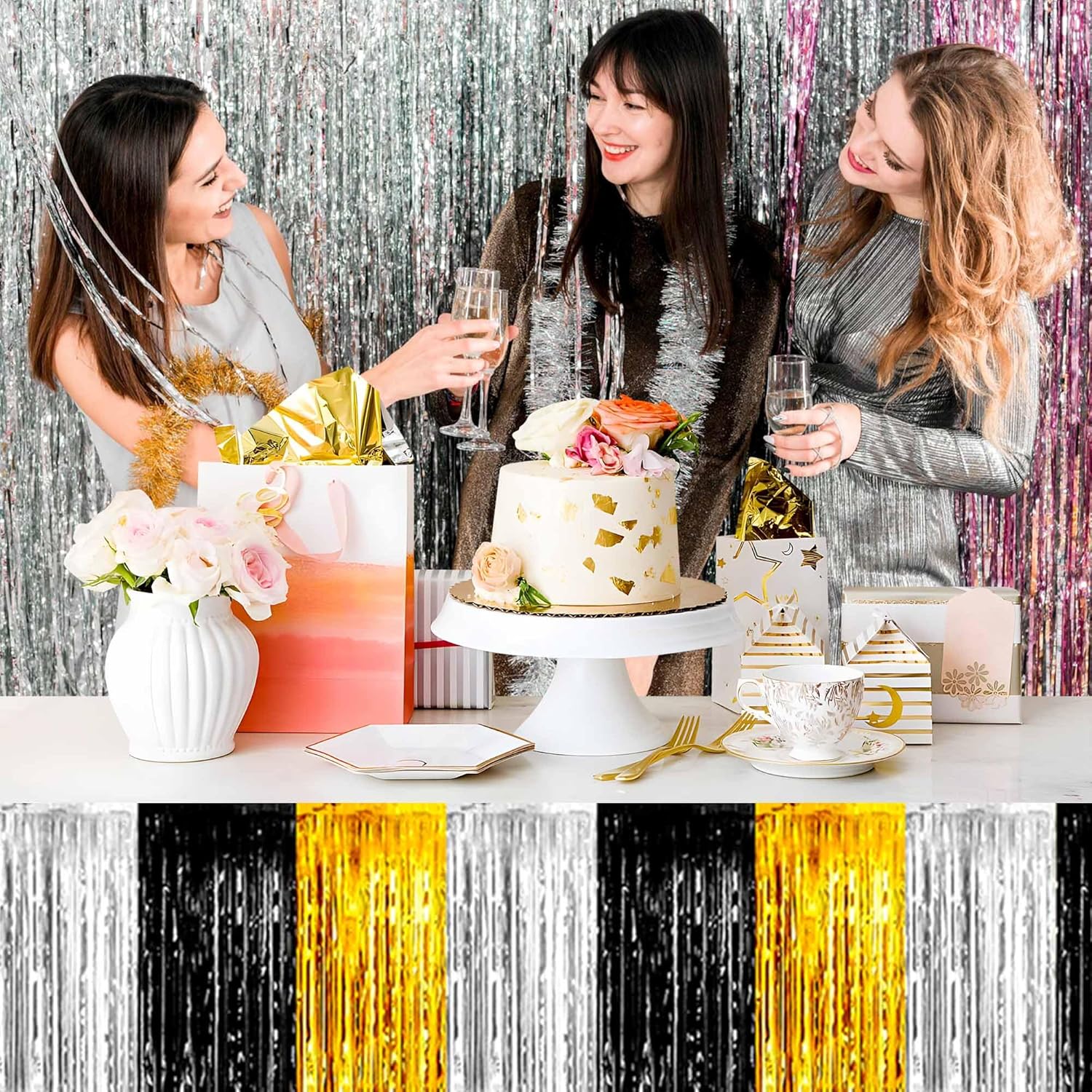 • Wide Application: Metallic tinsel foil fringe table skirts ideal for various themed party decorations, such as hotel banquet, parade float, hollywood party, homecoming, christmas, birthday, halloween, new year eve, bachelorette, engagement, anniversary, bridal shower, baby showers, graduations and more. They are also suitable for photo booth backdrops, bar, stage background, disco, etc