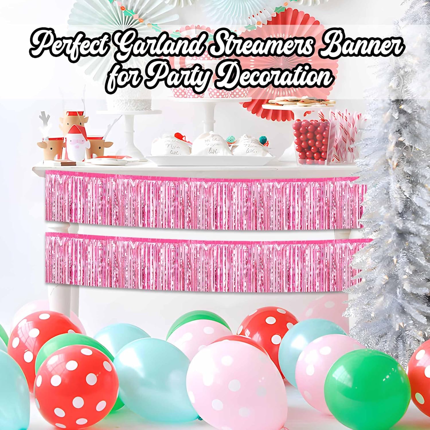 • Wide Application: Tinsel foil fringe streamers garland is ideal for any theme party decoration, such as hotel banquet, parade float, hollywood, homecoming, christmas, birthday, halloween, new year eve, bachelorette, engagement, anniversary, bridal shower, baby showers, graduations and more. They are also suitable for photo booth backdrops, bar, stage background, table skirt, disco, etc