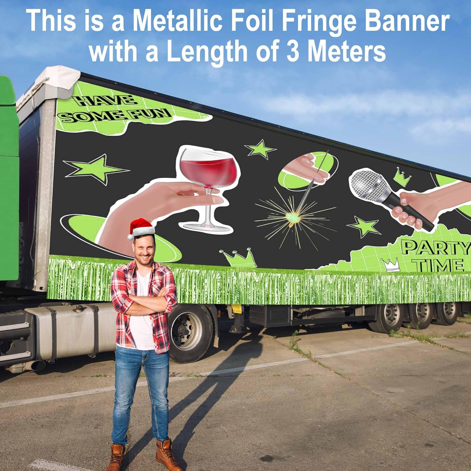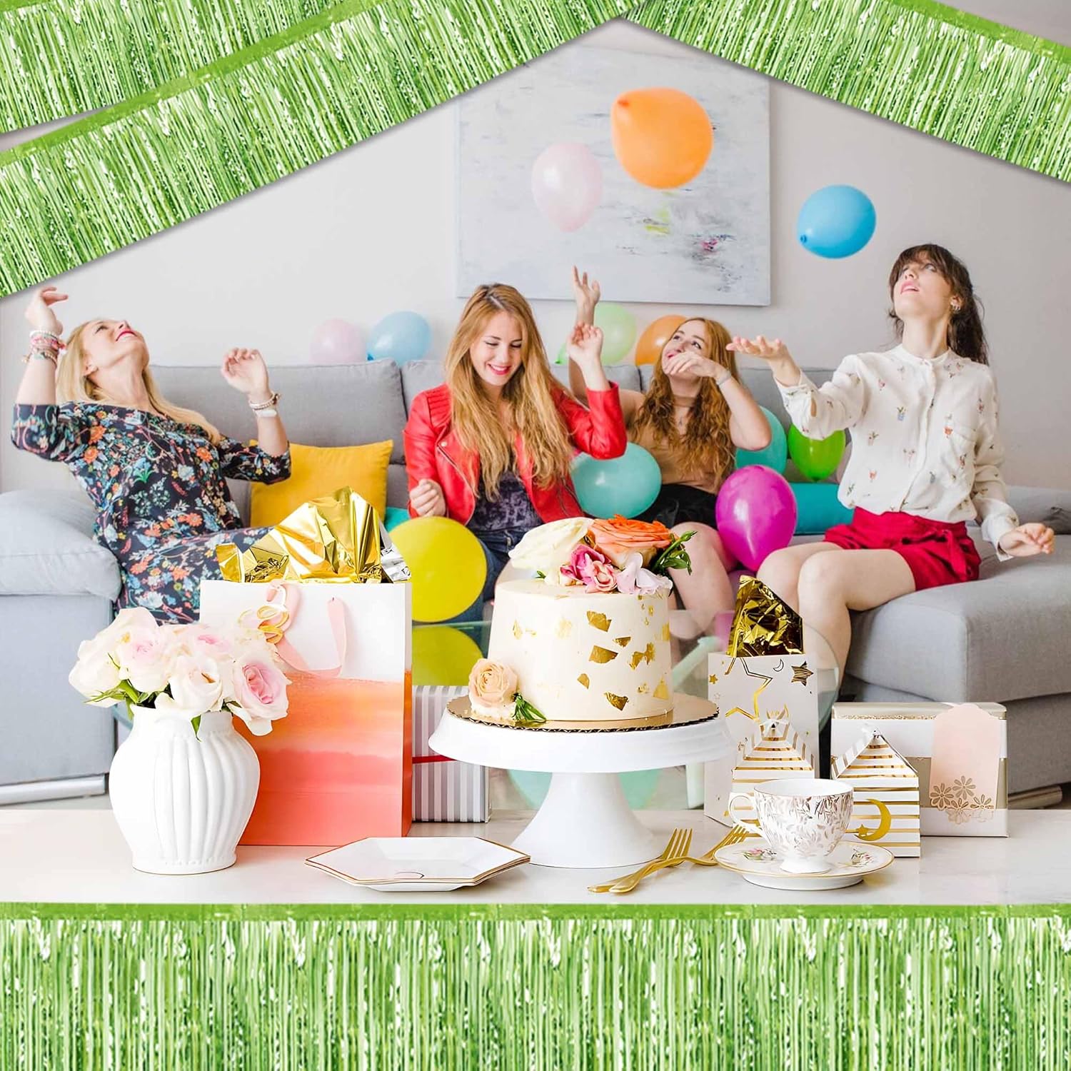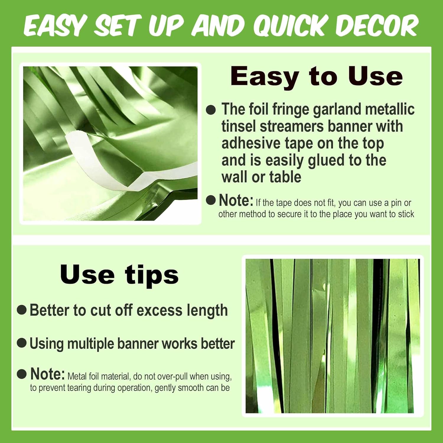 6 Pack 10 Ft Light Green Foil Fringe Garland Metallic Streamers Tinsel Banner Wall Hanging Garland Backdrop for Parade Floats, Halloween, Christmas, Thanksgiving, New Year Party Decorations