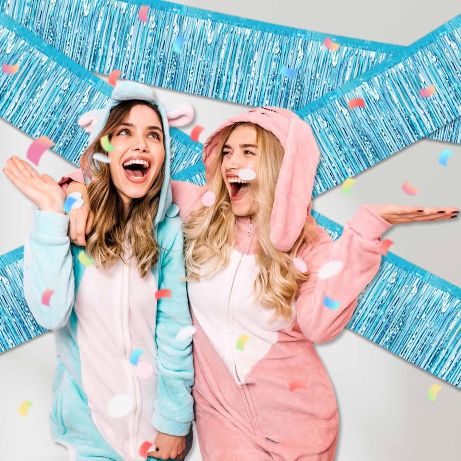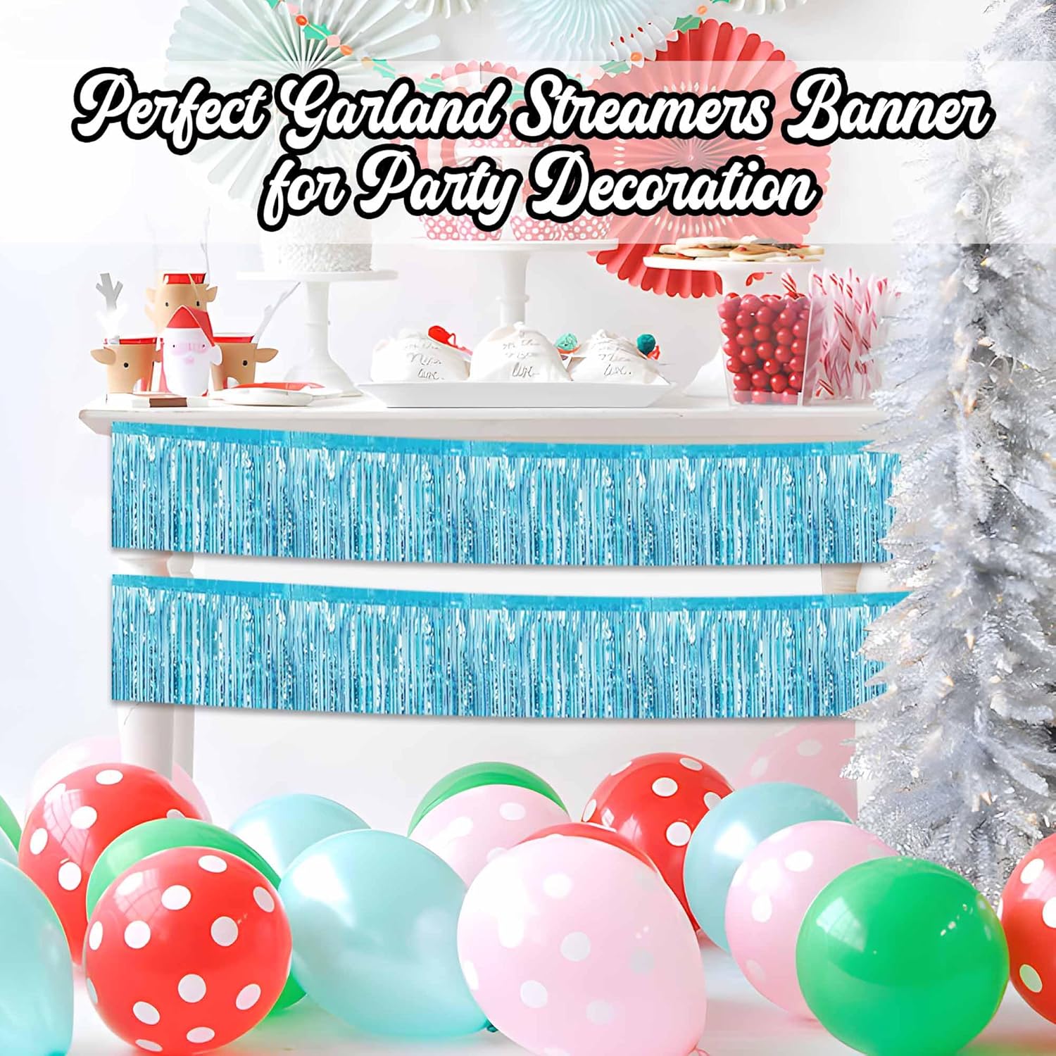 6 Pack 10 Ft Light Blue Foil Fringe Garland Metallic Streamers Tinsel Banner Wall Hanging Garland Backdrop for Parade Floats, Halloween, Christmas, Thanksgiving, New Year Party Decorations