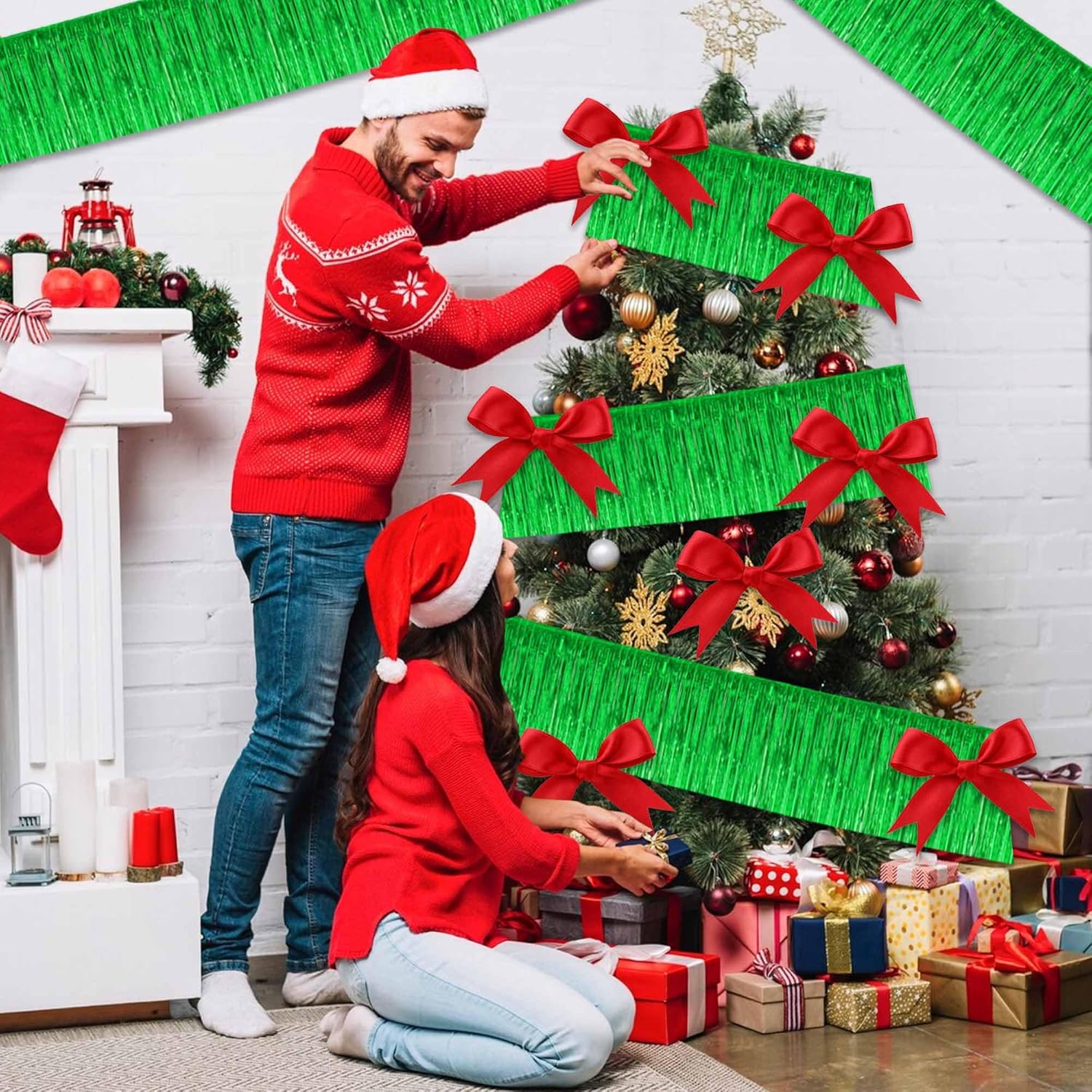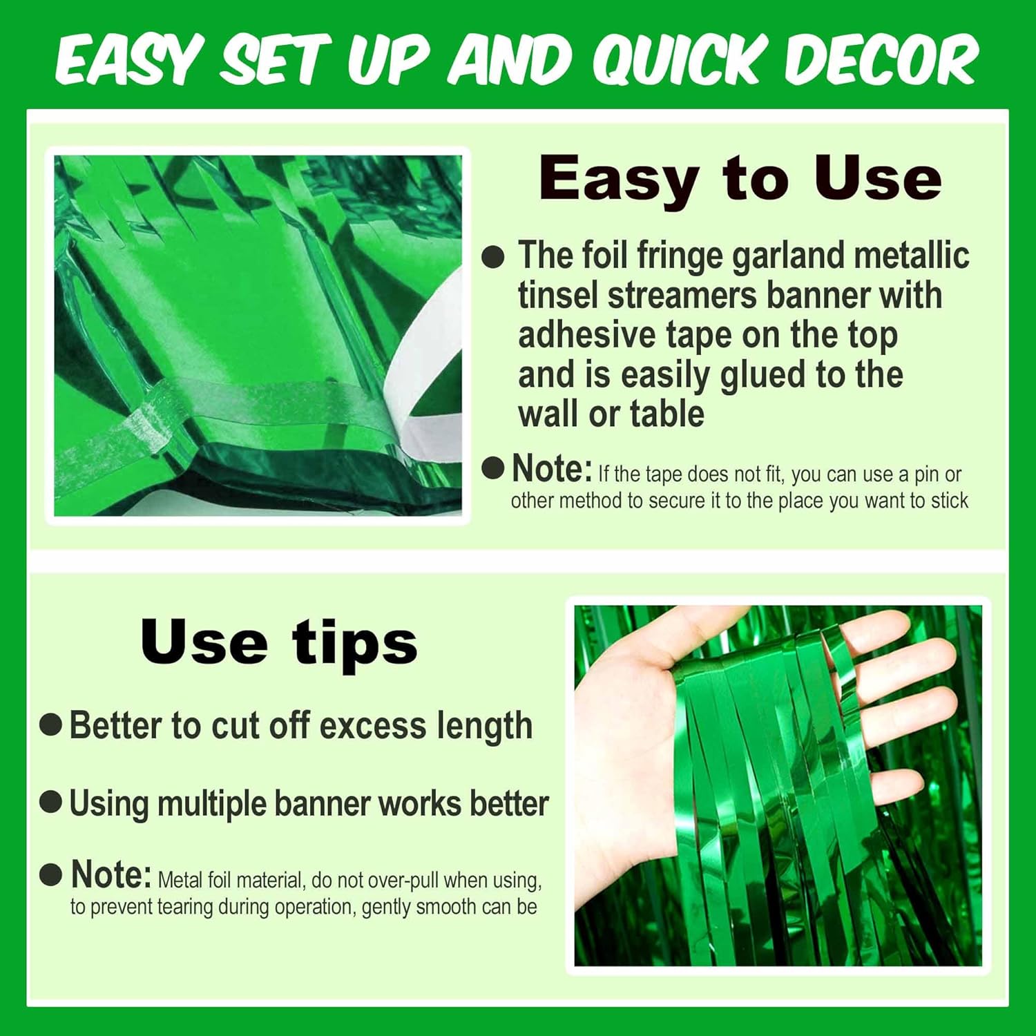 6 Pack 10 Ft Green Foil Fringe Garland Metallic Streamers Tinsel Banner Wall Hanging Garland Backdrop for Parade Floats, Halloween, Christmas, Thanksgiving, New Year Party Decorations