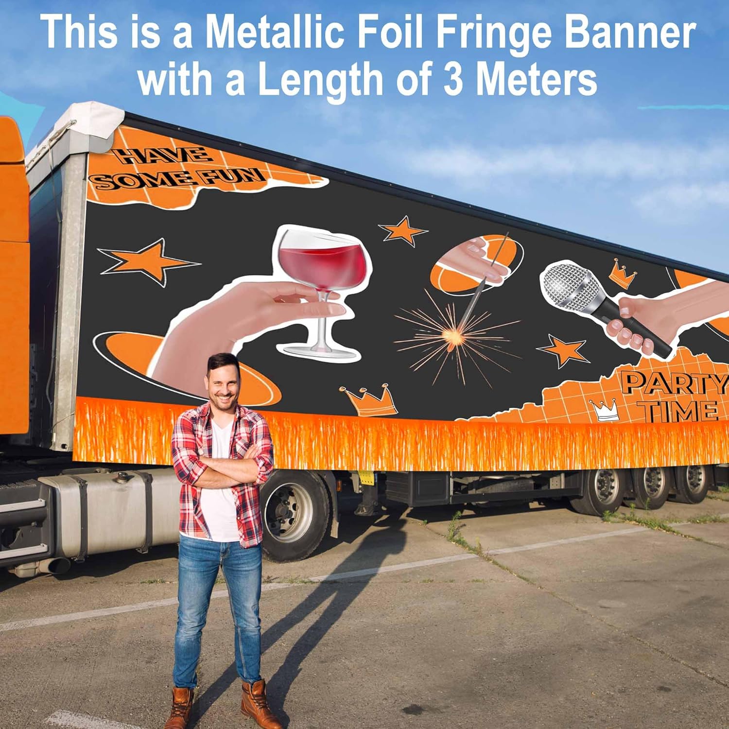 6 Pack 10 Ft Macaron Orange Foil Fringe Garland Metallic Streamers Tinsel Banner Wall Hanging Garland Backdrop for Parade Floats, Halloween, Christmas, Thanksgiving, New Year Party Decorations