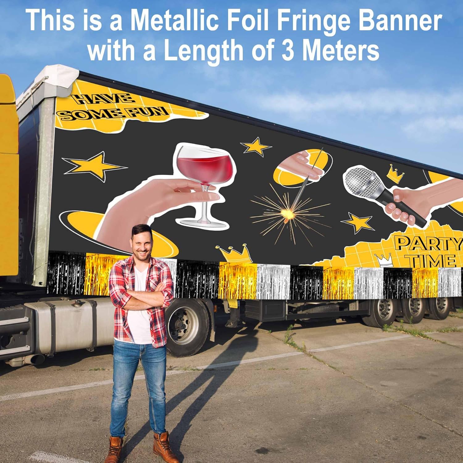 • Easy to Use: Tinsel foil fringe garland banner streamers the back has double-sided tape, gently peel double-sided tape off and it would be very easy to paste on wall, window, table, door, parade float or anywhere you want to decorate, add some festive atmosphere to the party