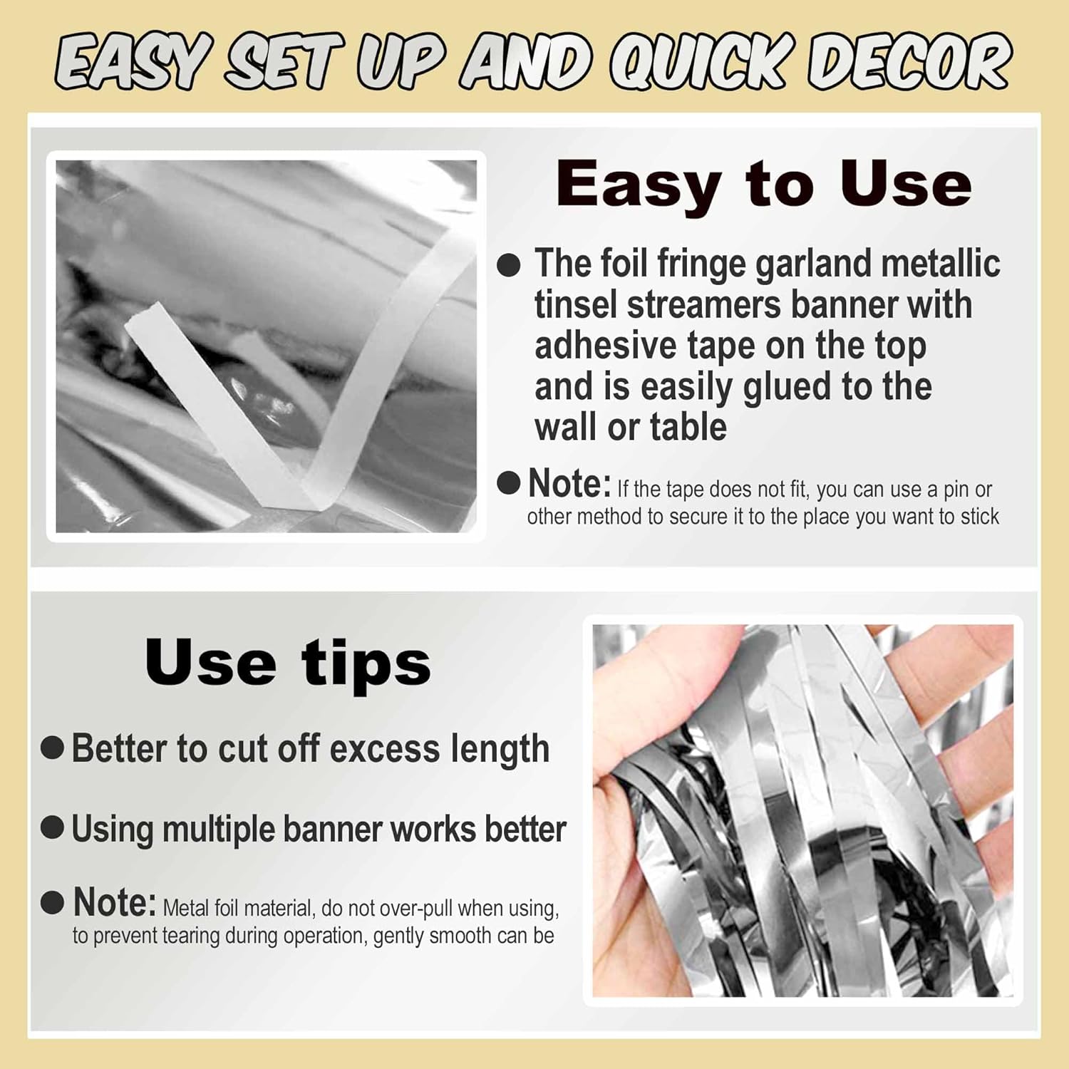 • Easy to Use: Tinsel foil fringe garland banner streamers the back has double-sided tape, gently peel double-sided tape off and it would be very easy to paste on wall, window, table, door, parade float or anywhere you want to decorate, add some festive atmosphere to the party