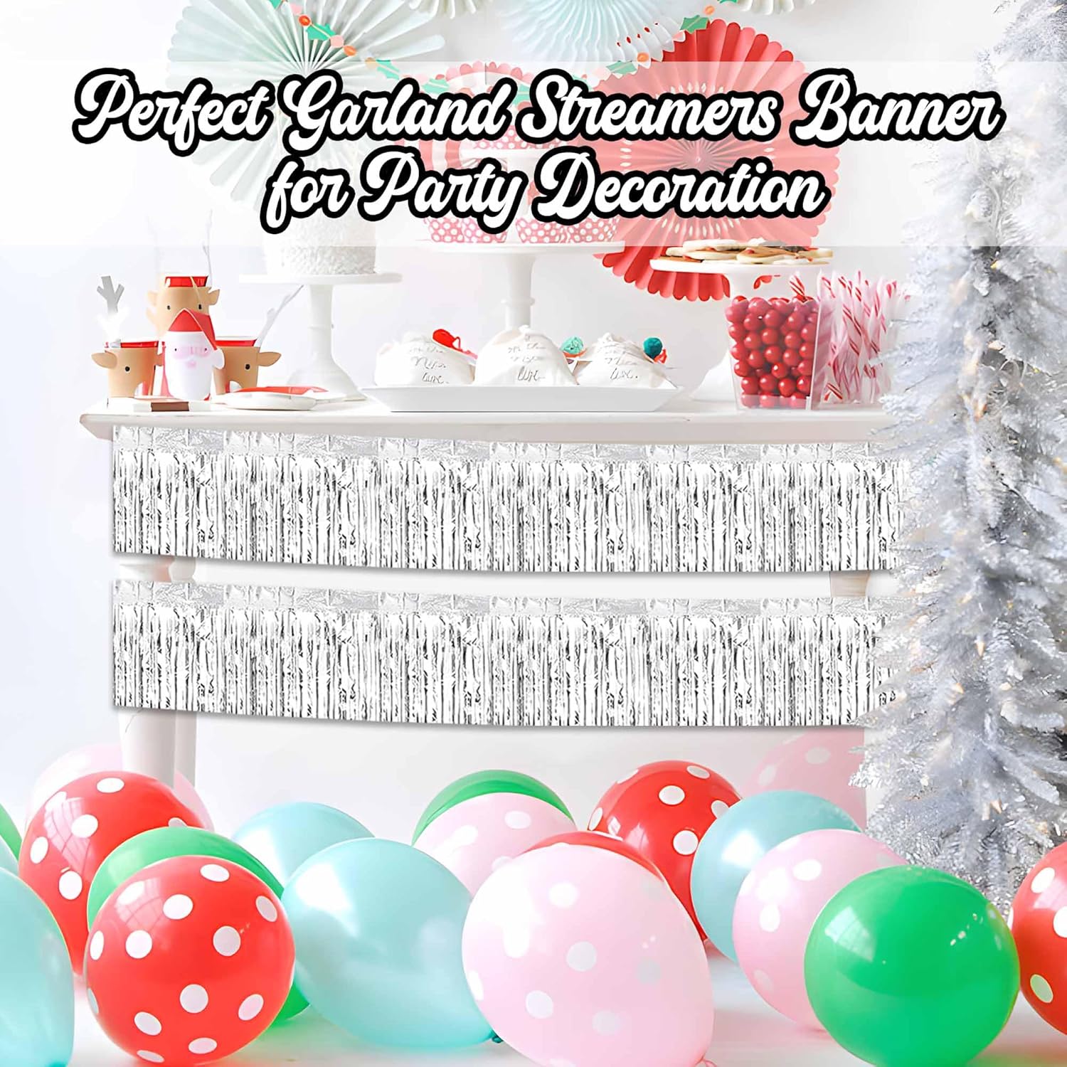 6 Pack 10 Ft Silver Foil Fringe Garland Metallic Streamers Tinsel Banner Wall Hanging Garland Backdrop for Parade Floats, Halloween, Christmas, Thanksgiving, New Year Party Decorations