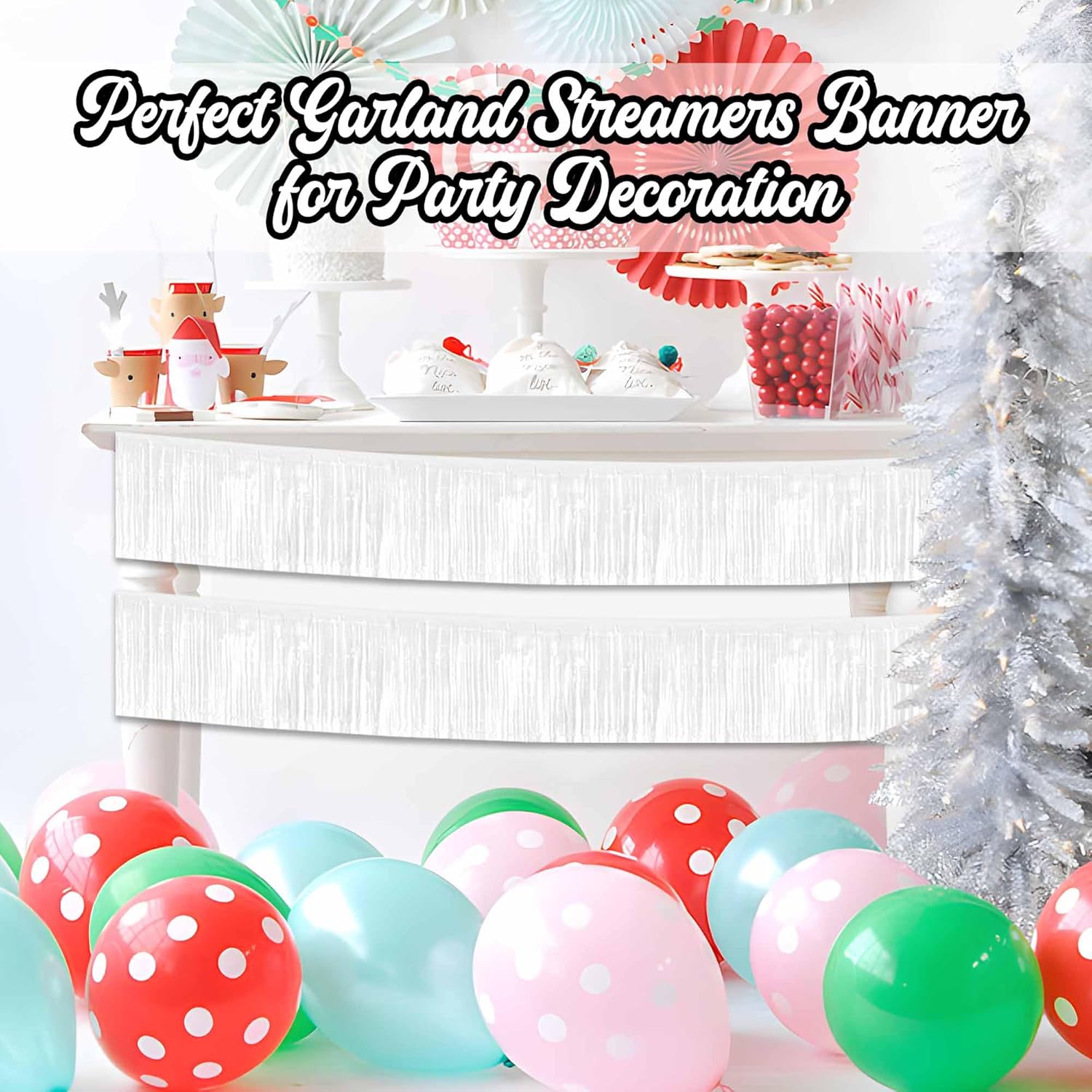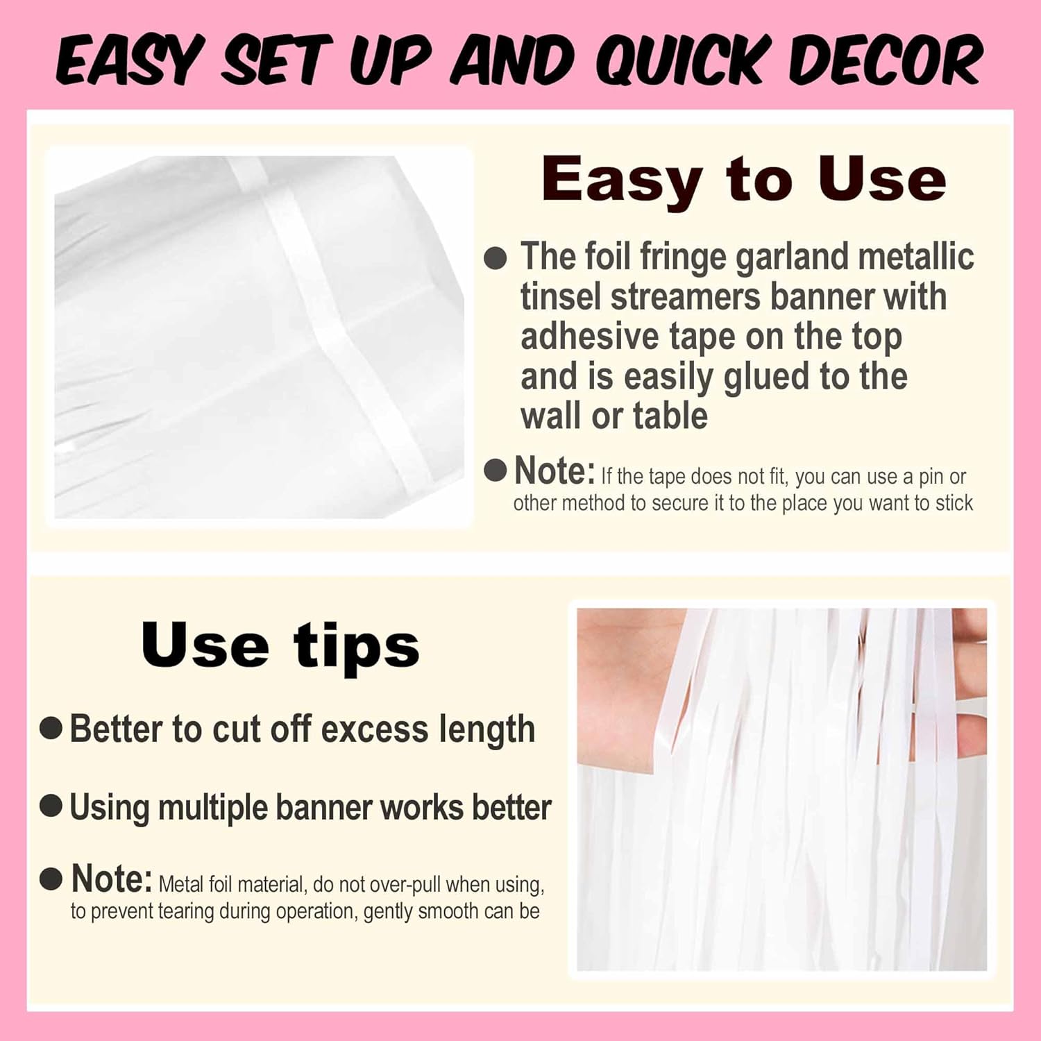 6 Pack 10 Ft Macaron White Foil Fringe Garland Metallic Streamers Tinsel Banner Wall Hanging Garland Backdrop for Parade Floats, Halloween, Christmas, Thanksgiving, New Year Party Decorations