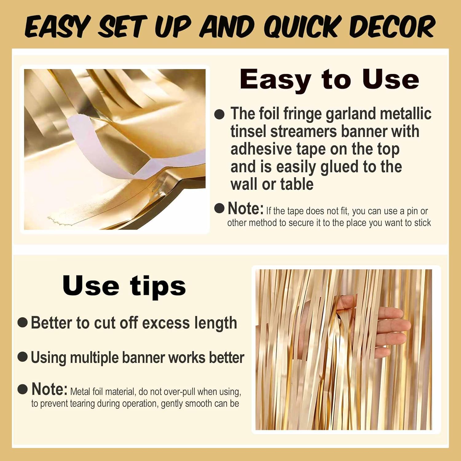 • Use Tips: You can cut the foil fringe garland banner streamers with scissors into the suitable Length, assemble the party streamers side by side to make the backdrop larger. If you want to make your foil fringe garland look fuller and thicker, you can overlap two garland, also overlap foil fringe garland in different colors to create a beautiful party easily