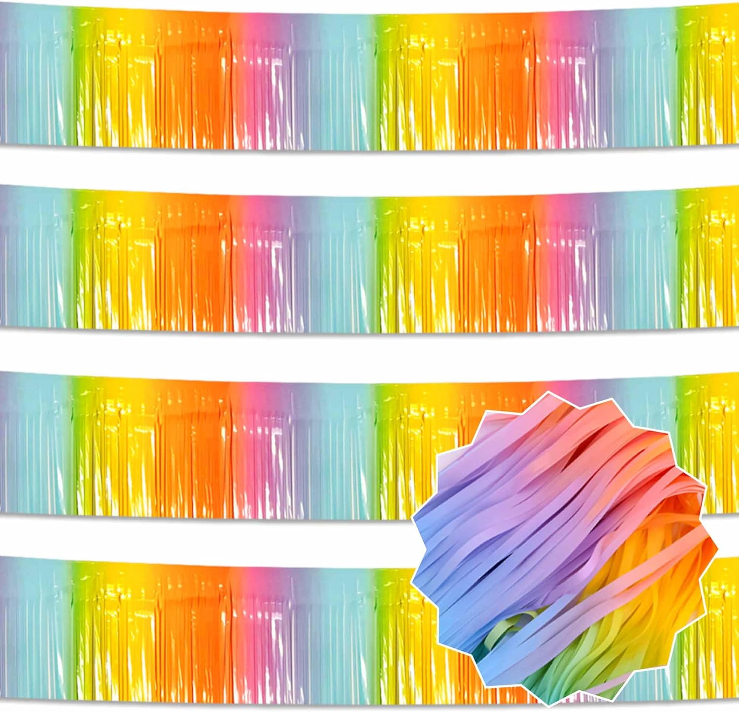 4 Pack 10 Ft Light Rainbow Foil Fringe Garland Metallic Streamers Tinsel Banner Wall Hanging Garland Backdrop for Parade Floats, Halloween, Christmas, Thanksgiving, New Year Party Decorations