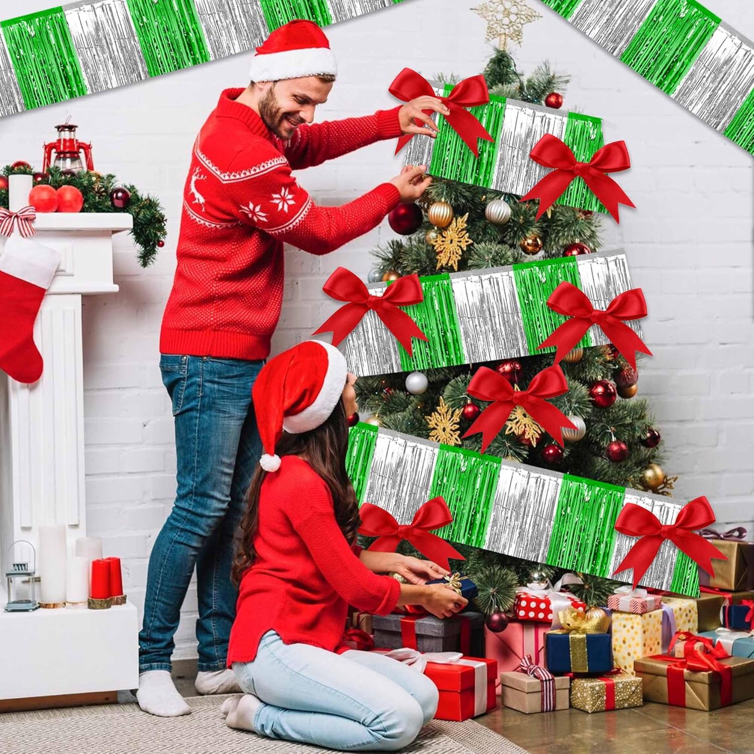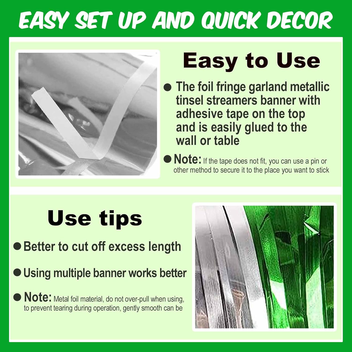 6 Pack 10 Ft Silver Green Foil Fringe Garland Metallic Streamers Tinsel Banner Wall Hanging Garland Backdrop for Parade Floats, Halloween, Christmas, Thanksgiving, New Year Party Decorations
