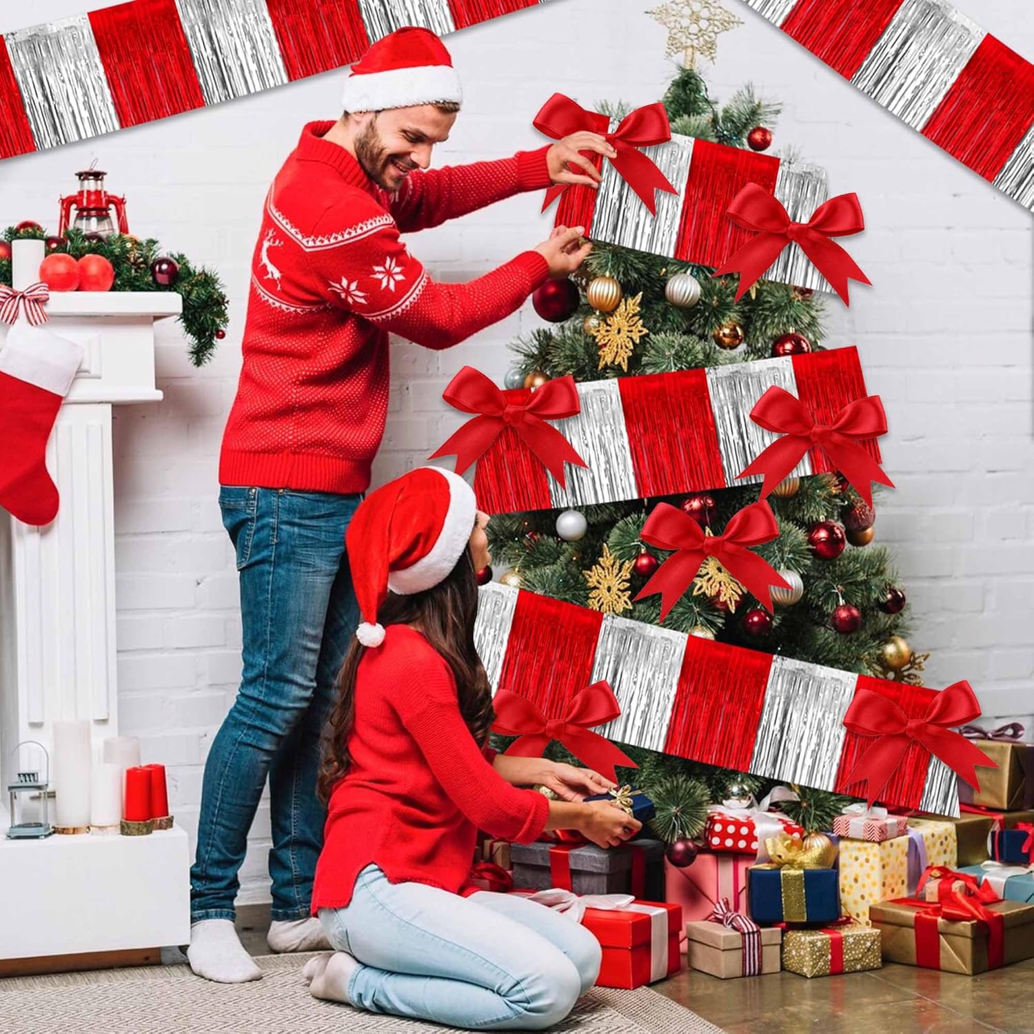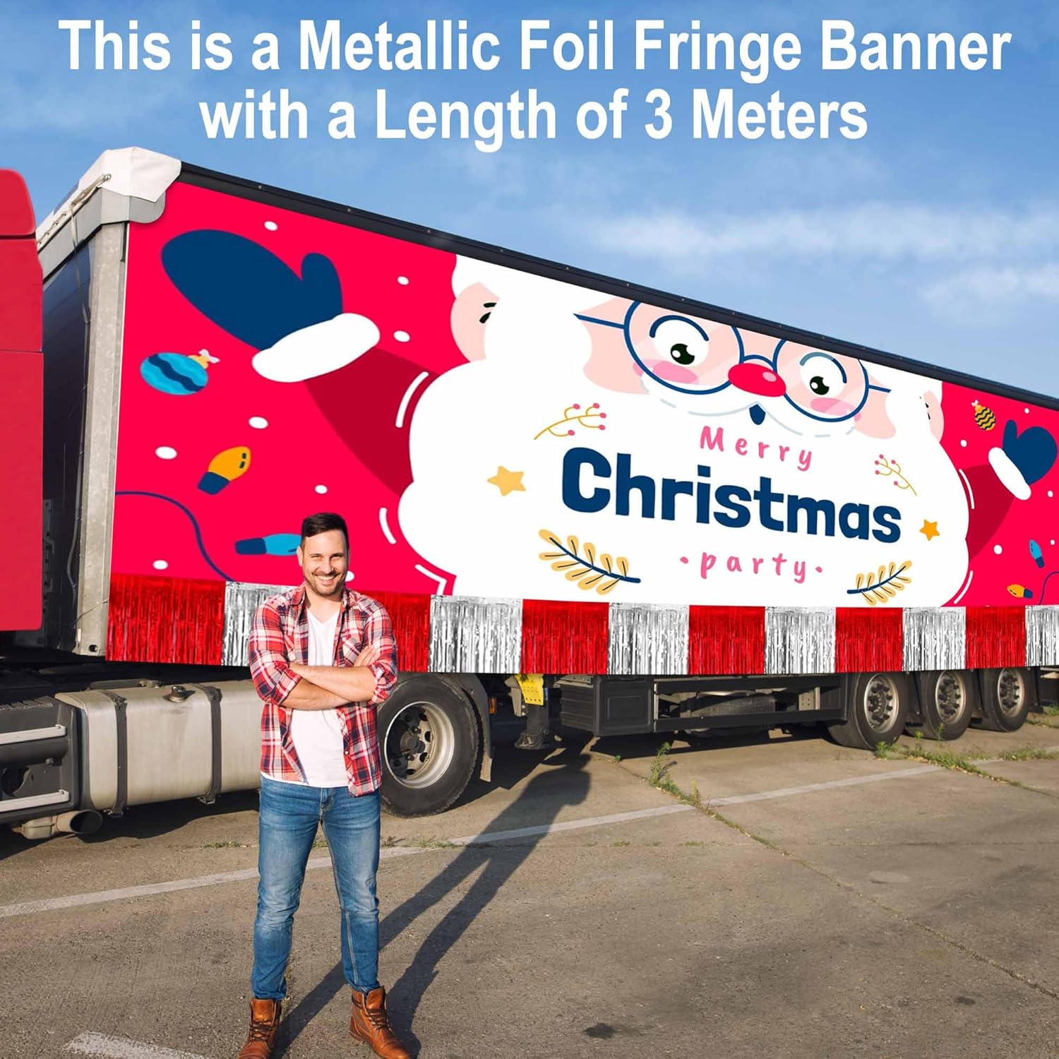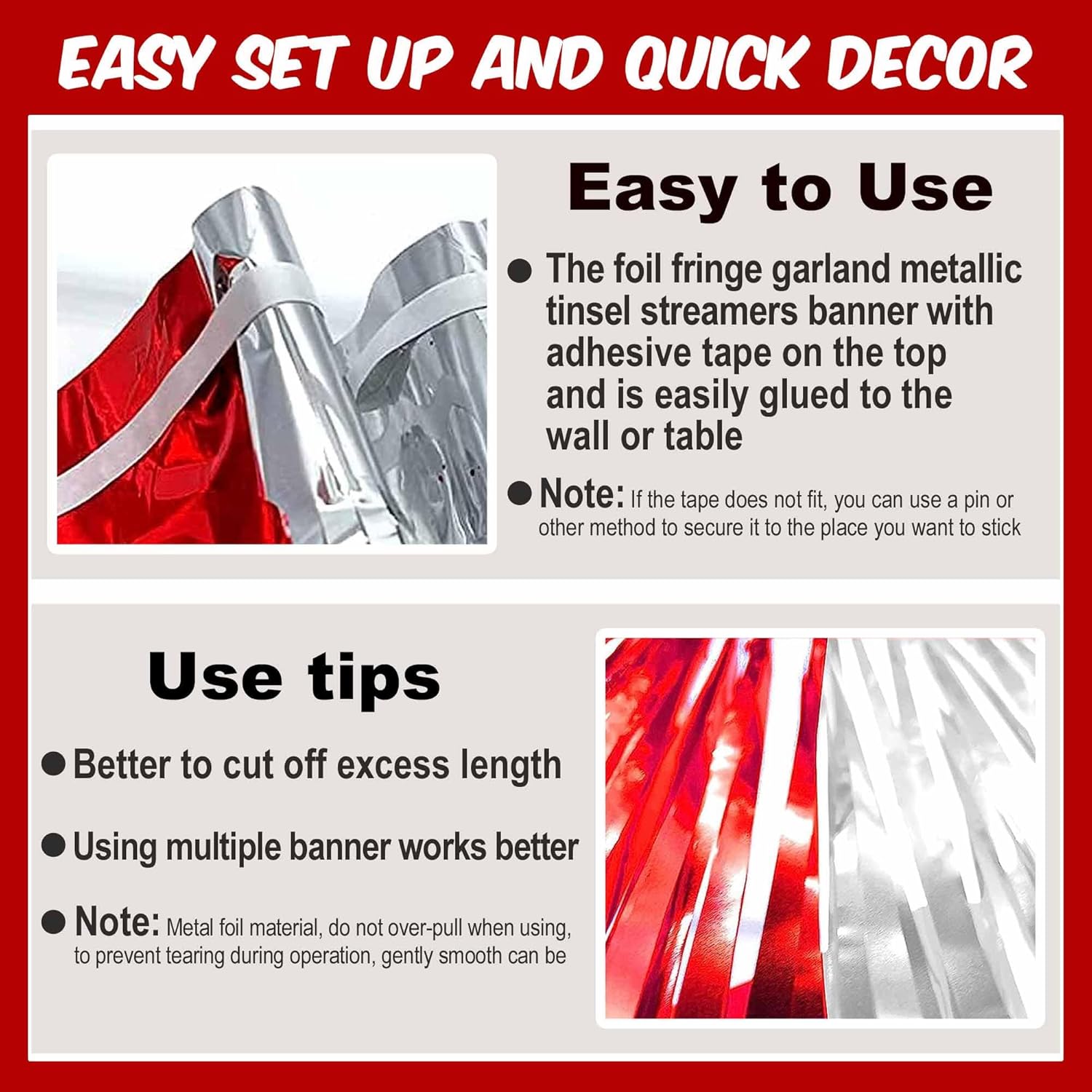 6 Pack 10 Feet Red and Silver Tinsel Foil Fringe Garland, Metallic Streamers Banner Wall Hanging Garland for Parade Floats, Graduation, Birthday, Baby Shower, Disco, Celebration Party Decoration