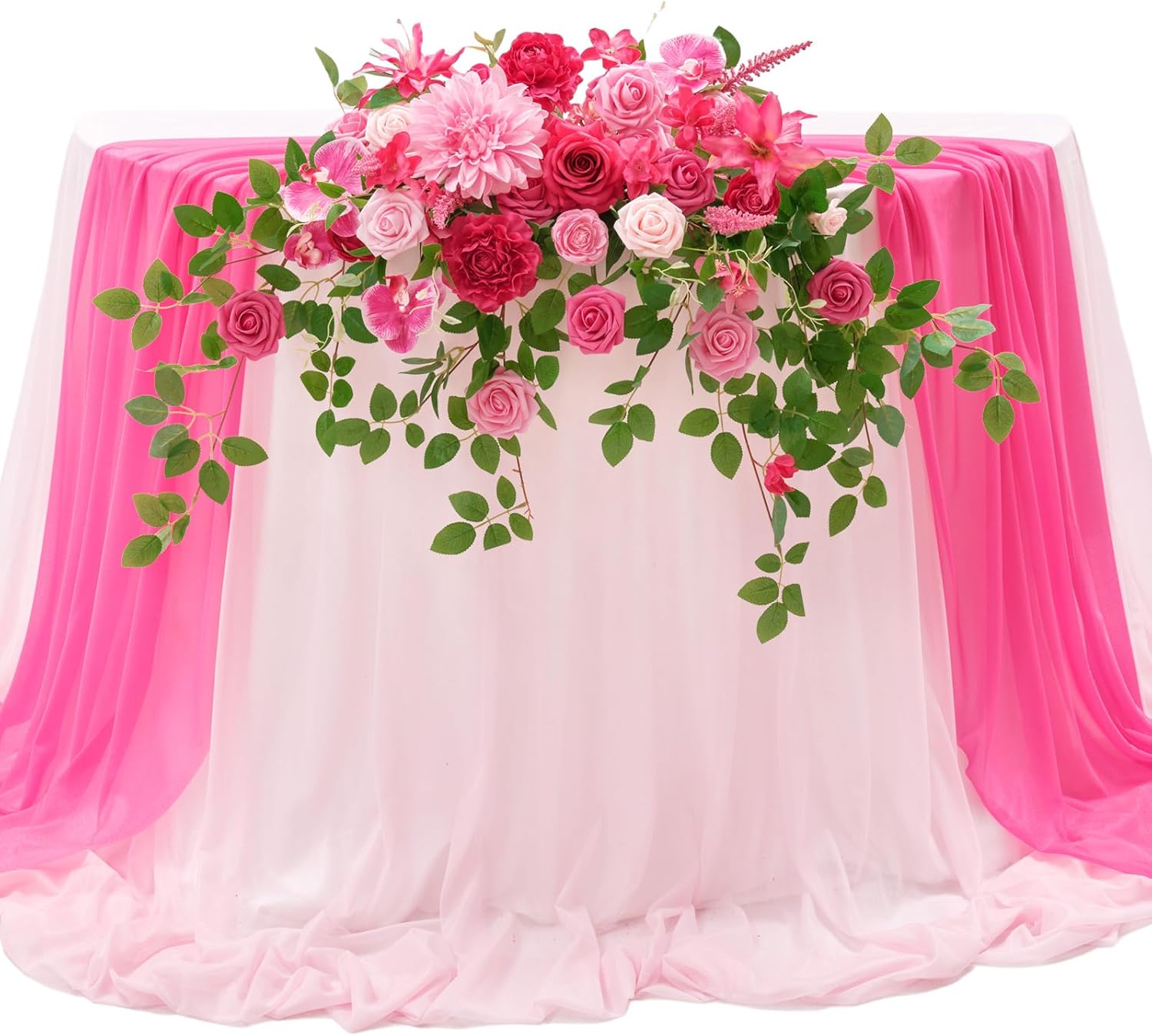 TINGE TIME Artificial Sweetheart Flower Swag with Table Cloth and Table Runner, Pack of 3 Floral Arrangement for Wedding Sweetheart Table Centerpiece Decoration Valentine's Day (Hot Pink)