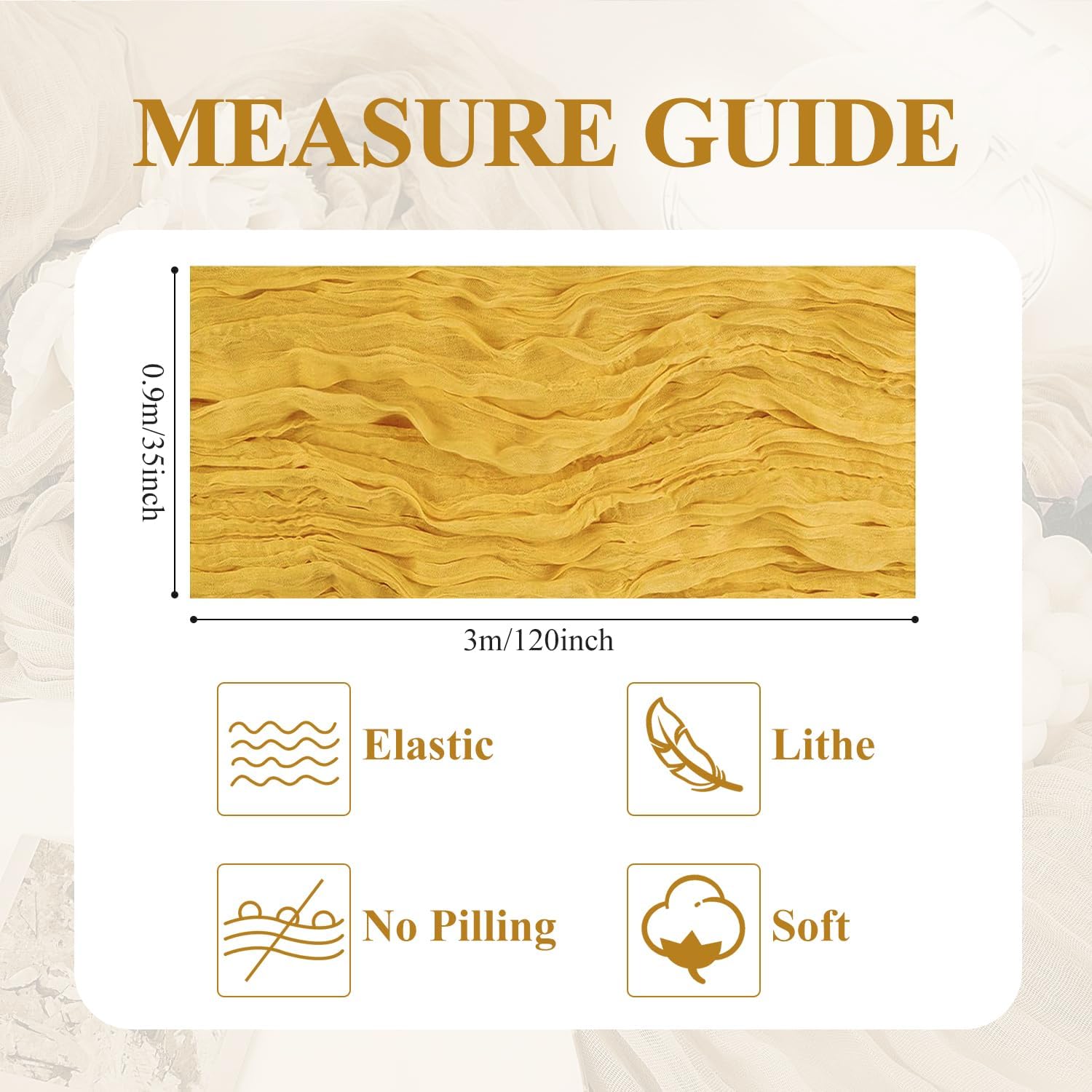 Asee'm 2pcs Cheesecloth Table Runner 120 Inches Long Gold Boho Gauze Cheese Cloth Runner 10FT Rustic Sheer Table Runners for Christmas Wedding Party Baby Shower Spring Easter Decoration
