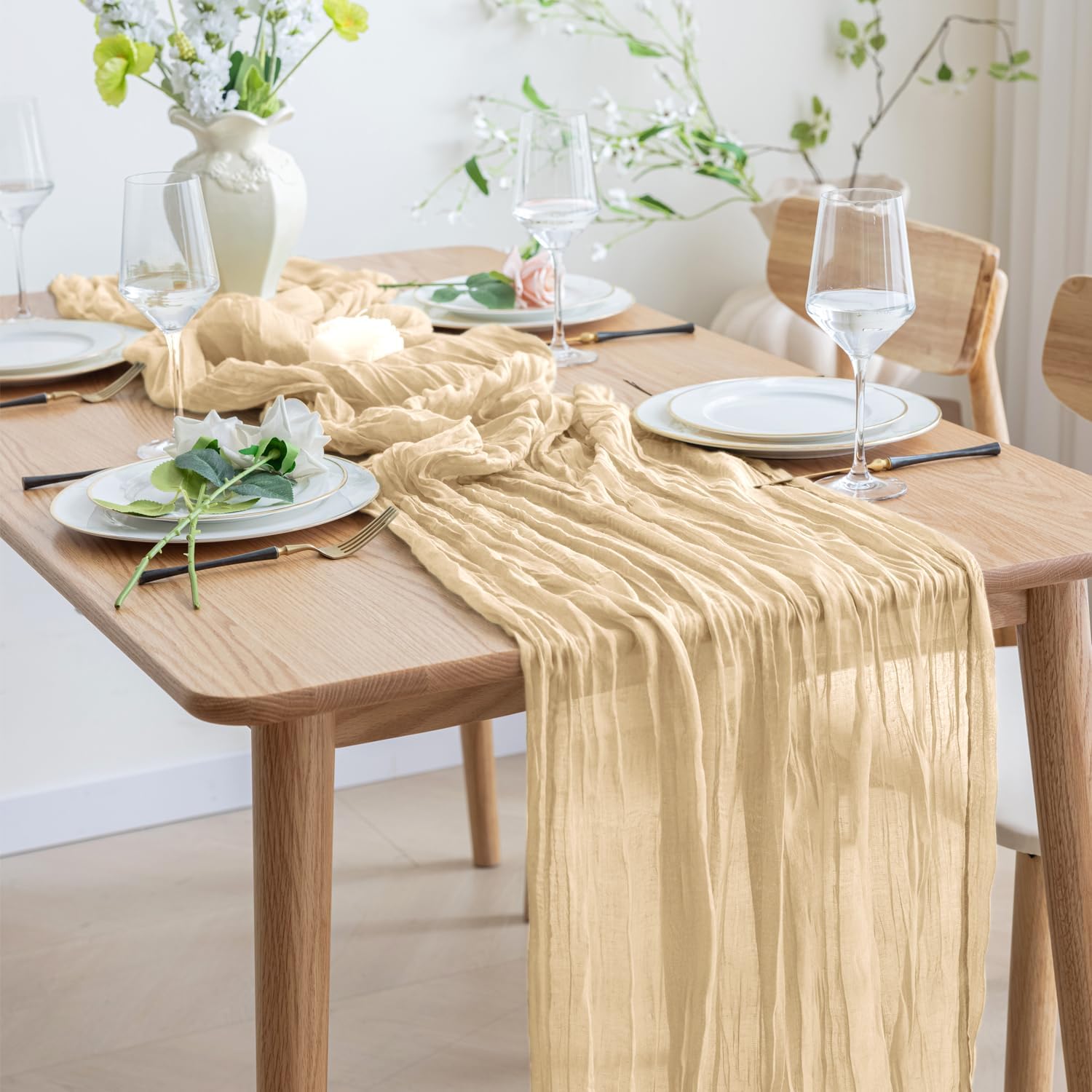 • 【Soft and Reusable】 The long table runner is made of good wrinkled design gauze fabric. The vintage wedding table runner is lightweight, soft to touch, natural drape, no pilling, durable and not easy to fade. It can be fully used as a decoration for your dining table, chair cover sashes, or an ornament for your party decor, etc.