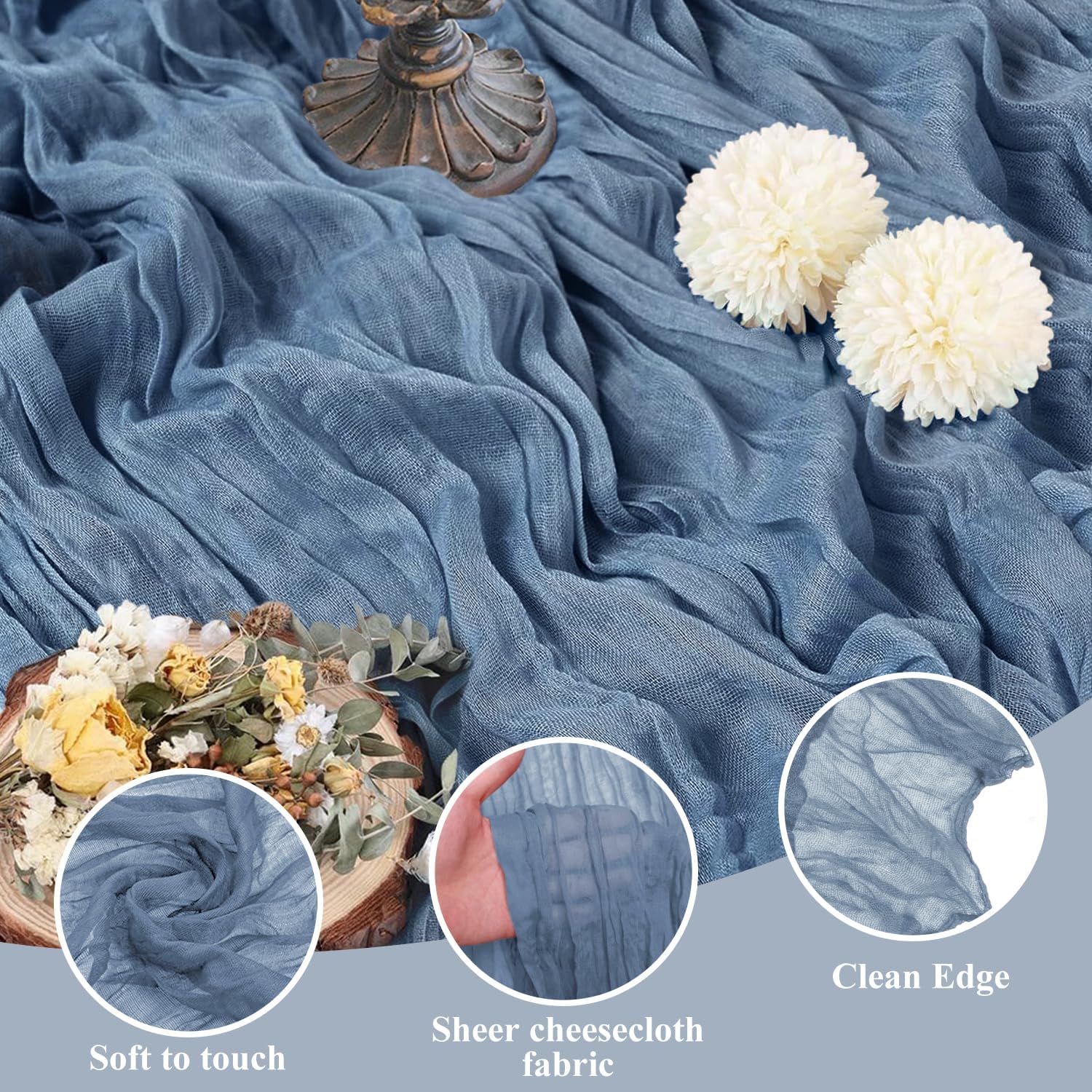 Asee'm 2pcs Cheesecloth Table Runner 120 Inches Dusty Blue Boho Gauze Cheese Cloth Runner 10FT Rustic Sheer Table Runners for Centerpiece Wedding Baby Shower Spring Easter Decoration