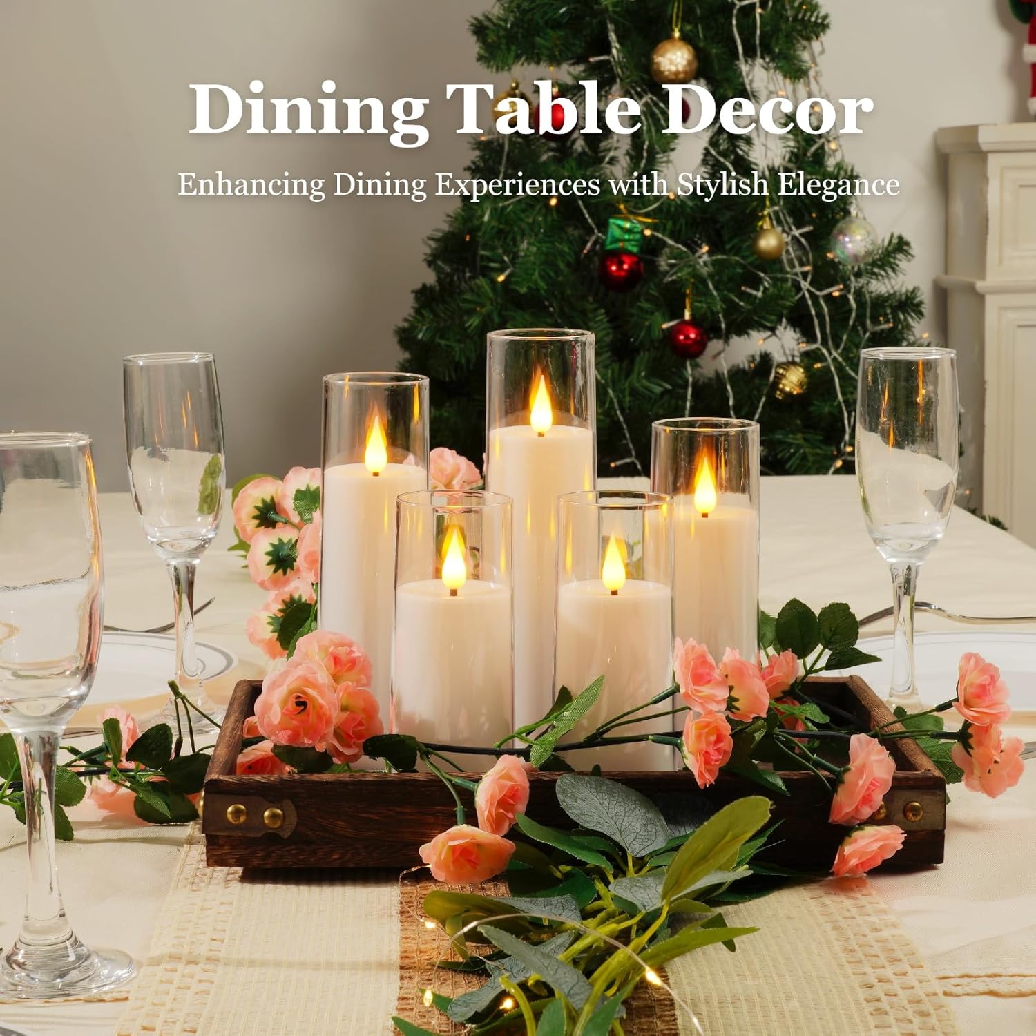• Realistic Flameless Candles: Acrylic Candle Shell + 3D flame, flickering softly and giving these battery candles a warm yellow glow, creating a cozy feeling, which is perfect for home, festival decorations,and gifts