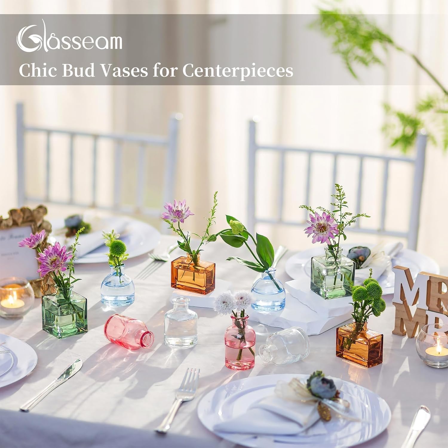 Glasseam Mini Bud Vases in Bulk 40: Colored Small Flower Vases for Centerpieces Cute Tiny Glass Vase for Flowers Modern Decorative Wedding Table Centerpiece for Dining Room Decor