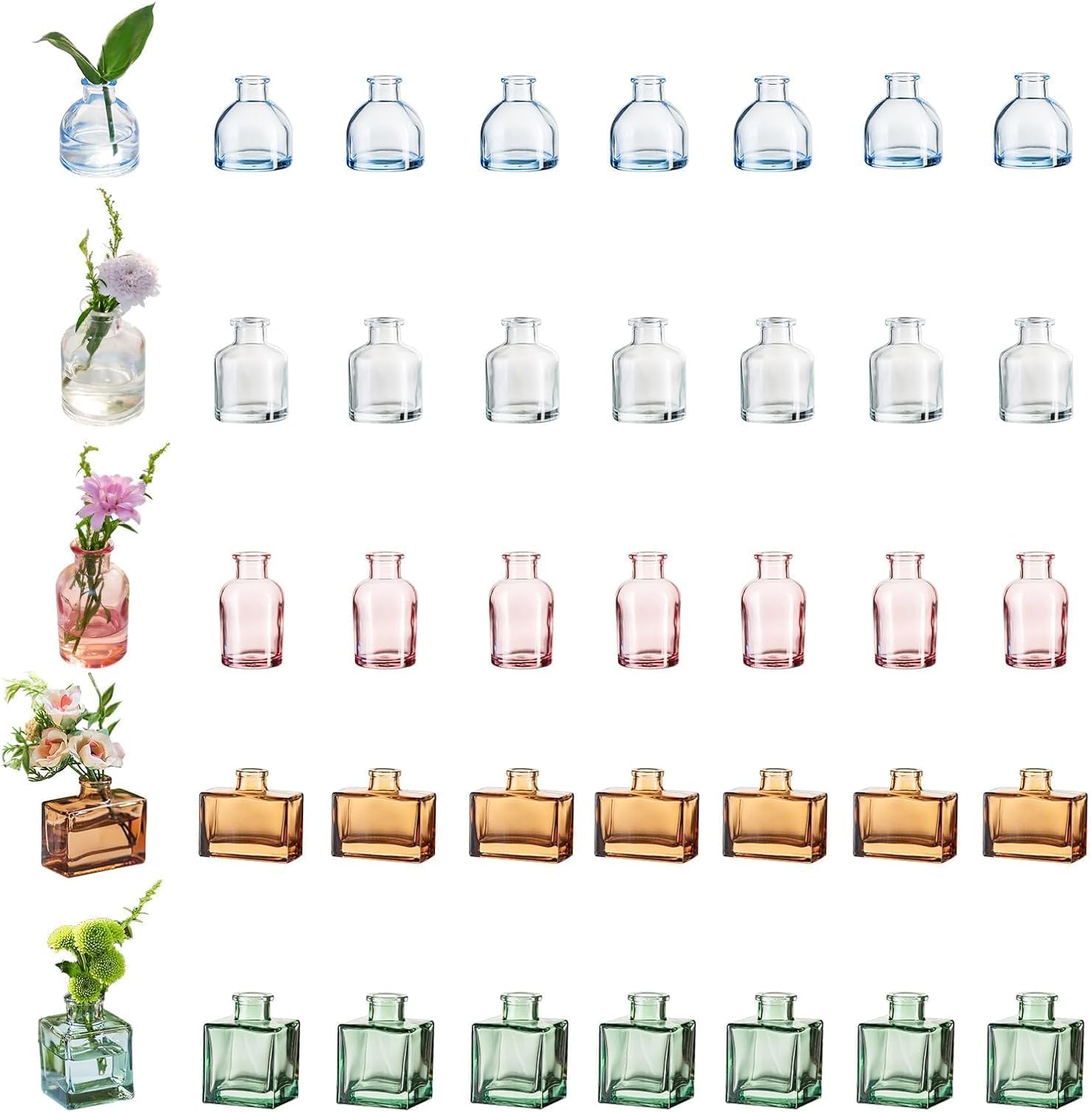 • Versatile Bulk Vases Set: 40 small glass vase in bulk at a reasonable price; A fun and affordable way for an all year decor accent; They are more than a recycled small glass vases, but also a simple reed diffuser bottle, a creative plant propagation vase for plants, and also giftable as birthday party parting gifts, baby shower favors, and wedding souvenirs