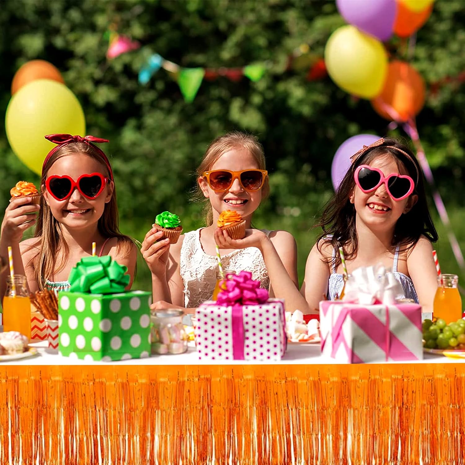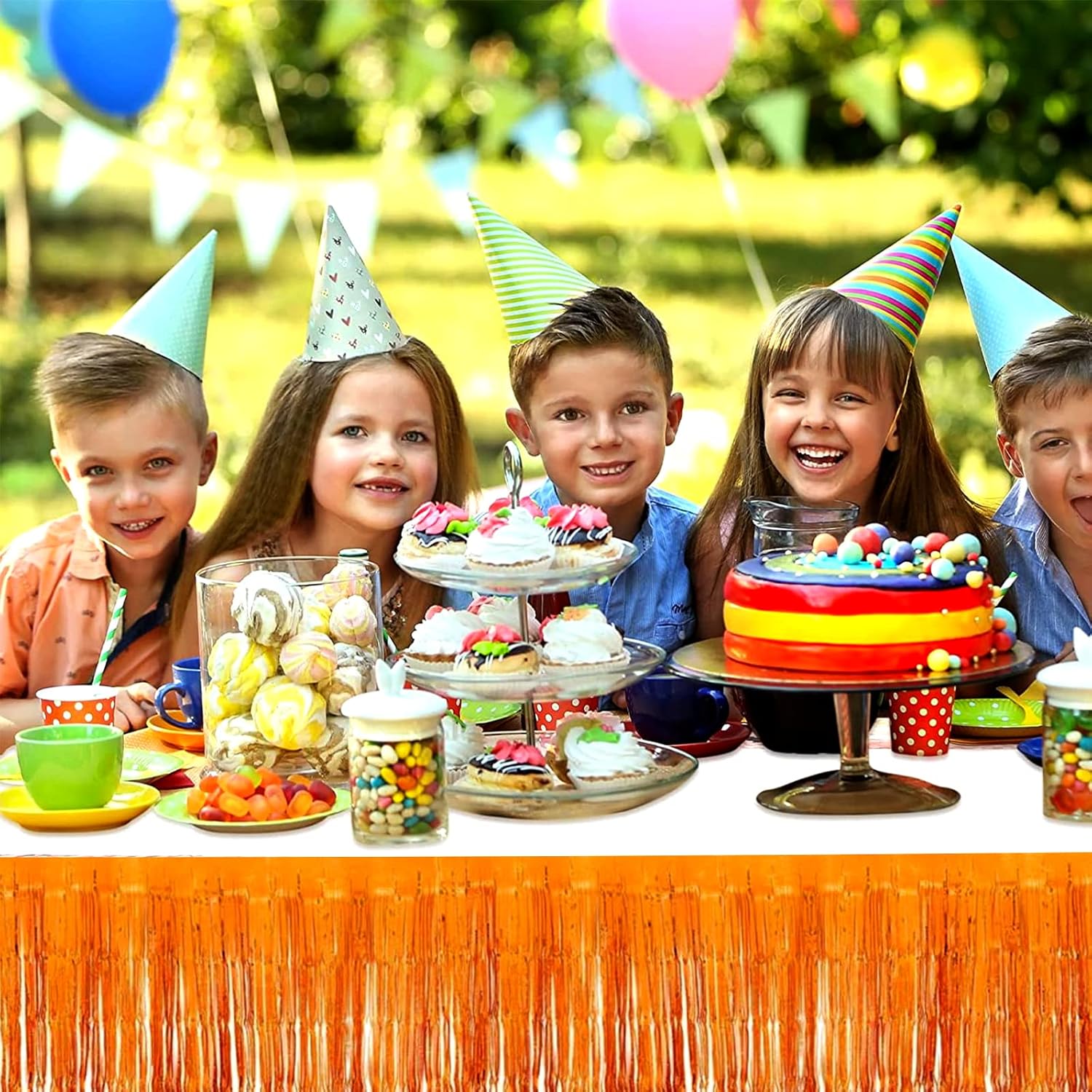 4 Pack 29x108 Inch Metallic Foil Fringe Tinsel Table Skirts for Rectangle Tables Streamer Curtains Backdrop for Wedding, Birthday, Parade Floats, Christmas, Halloween Party Decoration(Orange)
