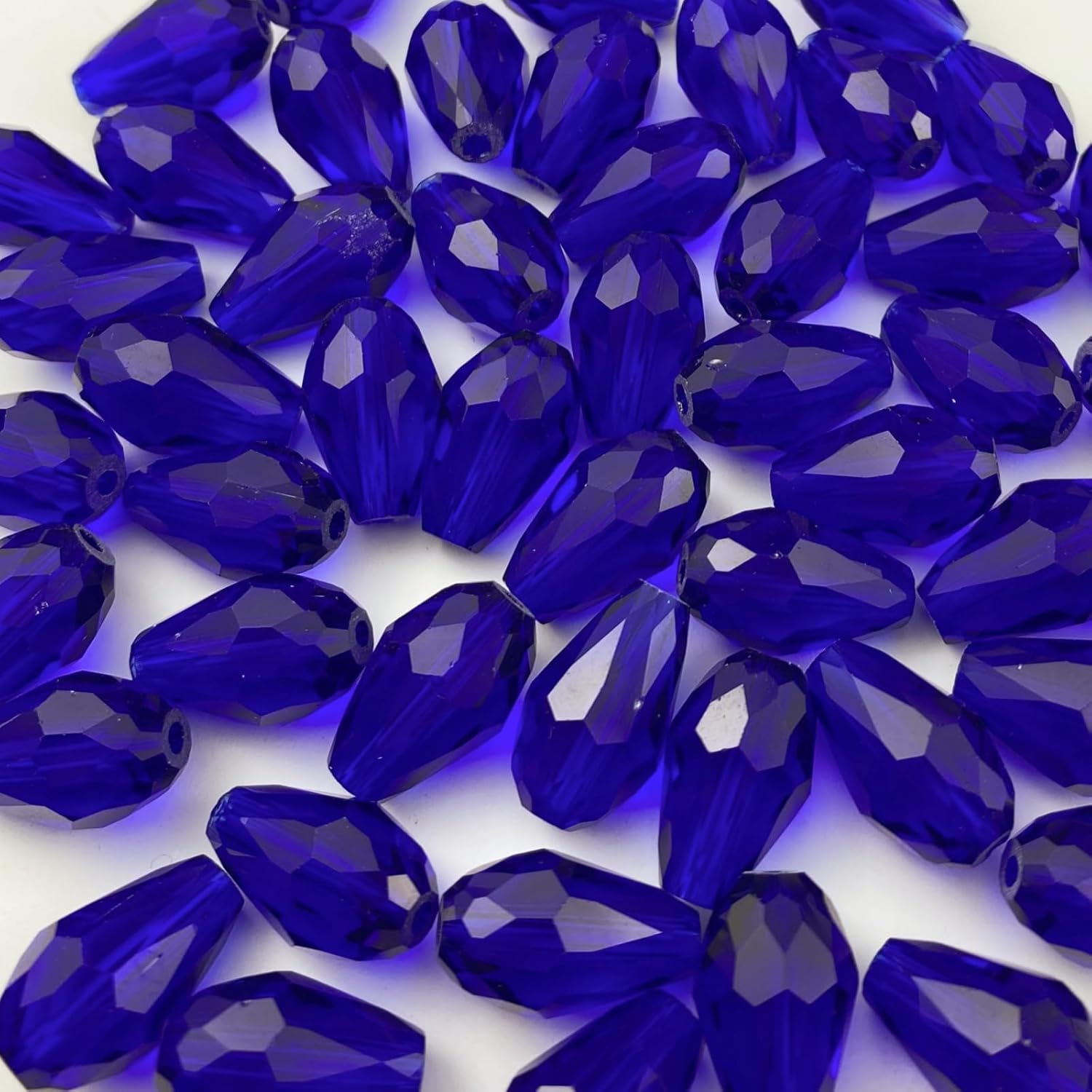 50pcs 10x15mm Teardrop Crystal Glass Beads Vertical Hole Faceted Glass Teardrop Spacer Beads for Bracelets Necklace Earring DIY Jewelry Making Craft(Sapphire Blue)