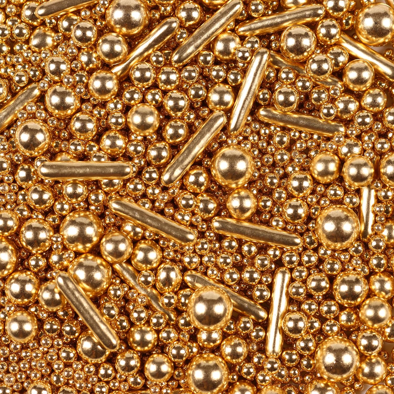 Gold Pearl Sprinkles for Cake Decorating, Pearl Metallic Rod Mix, 4.23 oz Gold Sprinkles for Cupcakes, Ice Cream, Cookies, Baby Showers, Celebrations, Weddings, Valentines, and Easter. (120g)