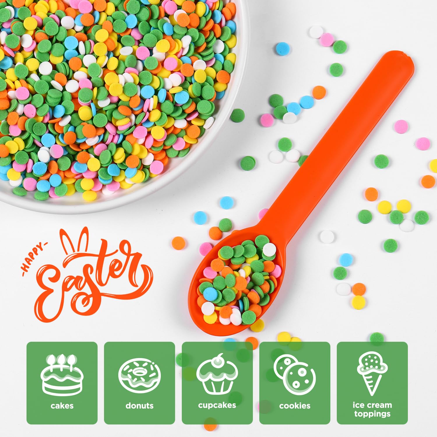 • Edible Round Sprinkles: Spring Confetti Sprinkles are a favorite of kids of any age. Perfect for spring cake baking and decorating. A must for Easter Day, baby showers, or any spring occasion.