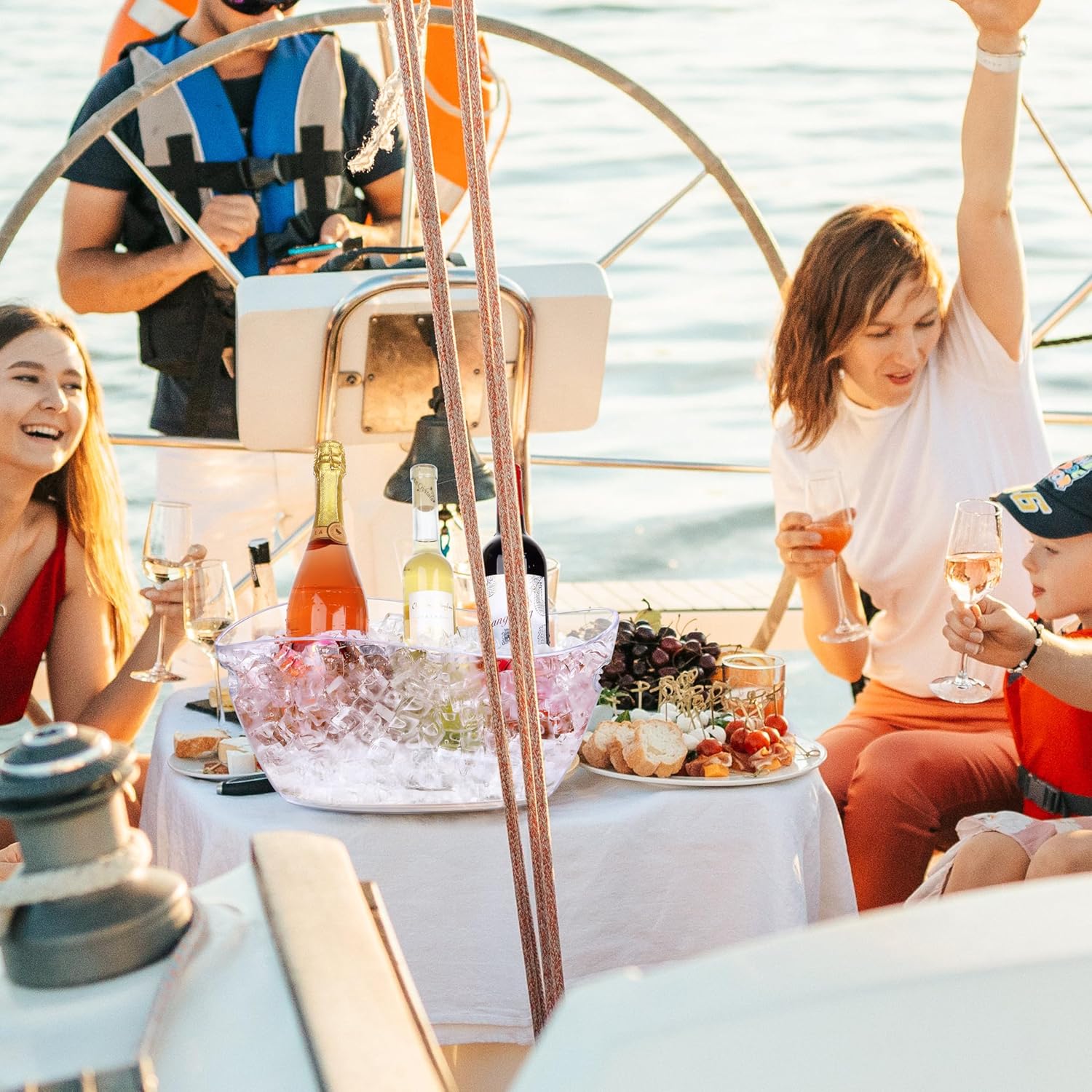 • Upgraded Capacity: It's a patented ice bucket. We customized the shape and upgraded the size of the mimosa tub so that the buckets can hold enough champagne and beer for the maximum. It does not take up much space and is beautifully shaped. It is the perfect size that can hold up to 3-4 wine/champagne bottles or 5-6 beer bottles. It is deep and wide enough to hold the required drinks, plus the required ice to keep it cool at the optimal drinking temperature