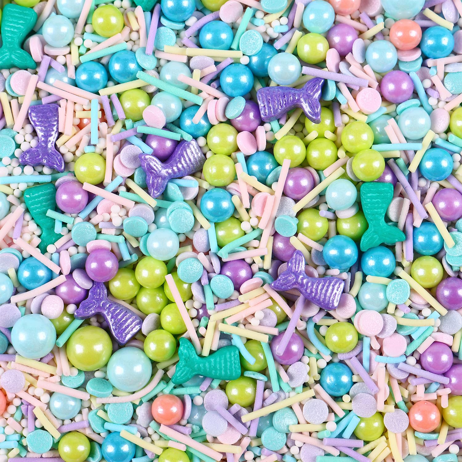 Edible Mermaid Sprinkles for Cake Decorating, Mermaid Cupcake Decorations, Pearl Sprinkles, Jimmy for Cupcakes, Cookies, Chocolate, Candy, and Ice Cream Topping(120g/4.23oz)