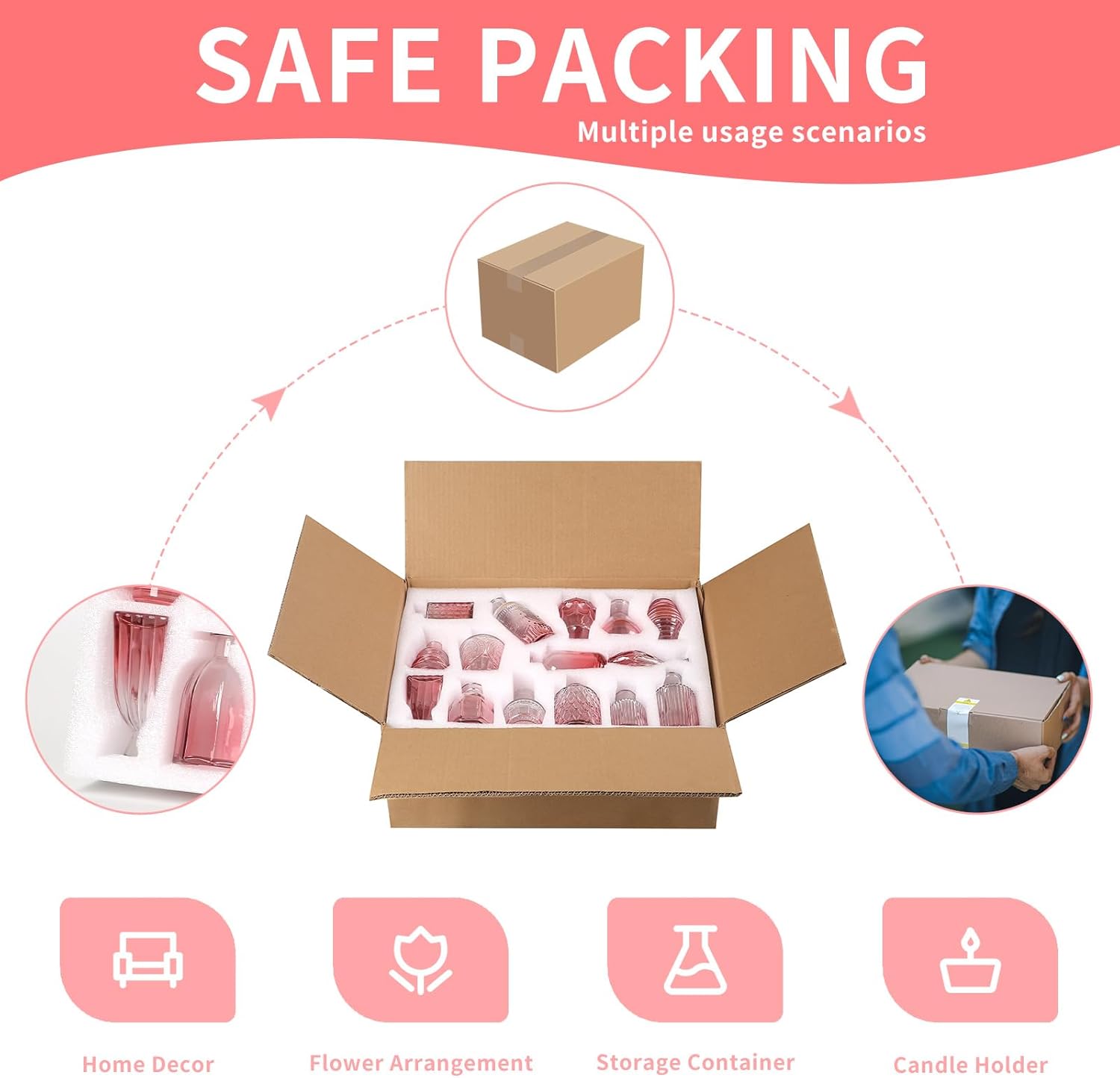 • Packaging and Warranty:Your perfect shopping experience is our ultimate goal.Please check the user manul first.The packaging is tailored for these vases for flowers.We have packed each small glass vase with extra care to ensure that it will not break during transportation.In case you receive some broken mini bud vases, please don't worry and be patient.We will replace them and refund them to you immediately.