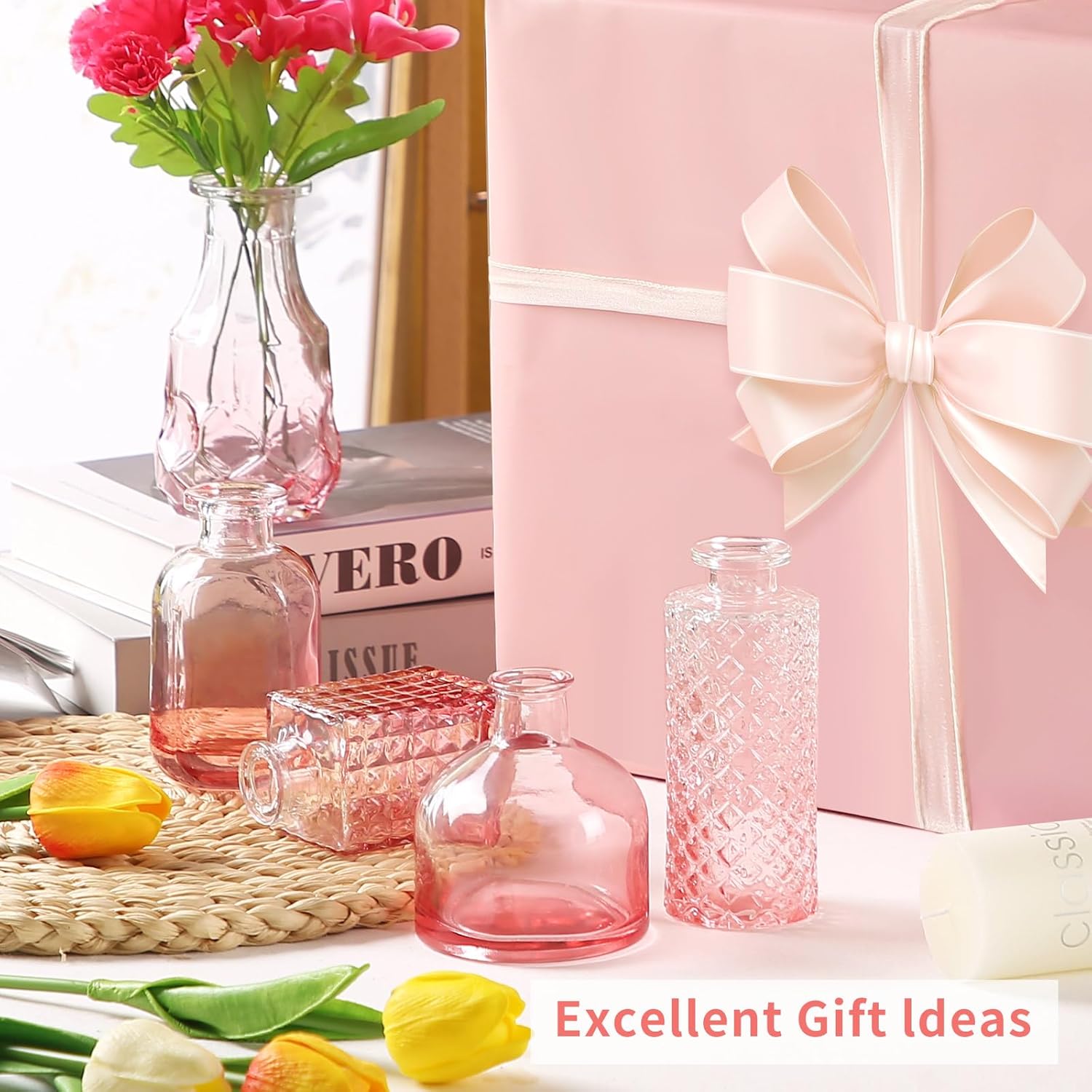 • Great Gifts Idea:These clear vases for decor designs are exquisite and textured,with simple and atmospheric packaging,making bud vase suitable as gifts for weddings,Mother's Day,birthdays,Christmas,New Year,Housewarming,Thanksgiving,anniversaries,and other special occasions.People will be happy to receive this gift.