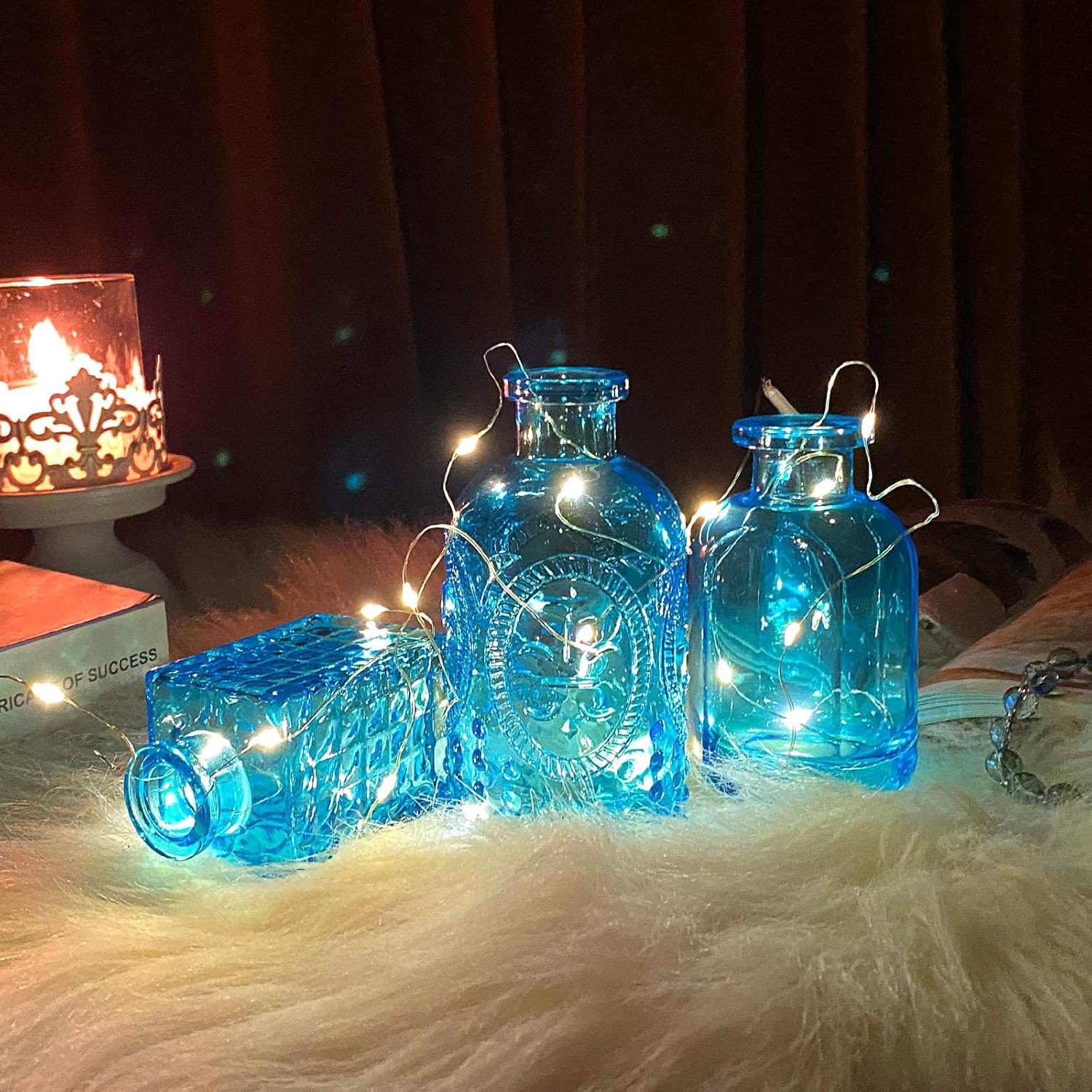 Glass Bud Vase Set, Mini Vases for Flowers, Bulk Vintage Mini Vases for Centerpieces Wedding Decor, Home Flower Décor, Candle Holders, Diffuse Bottles, Hydroponic, (Pack of 30,Sky Blue)