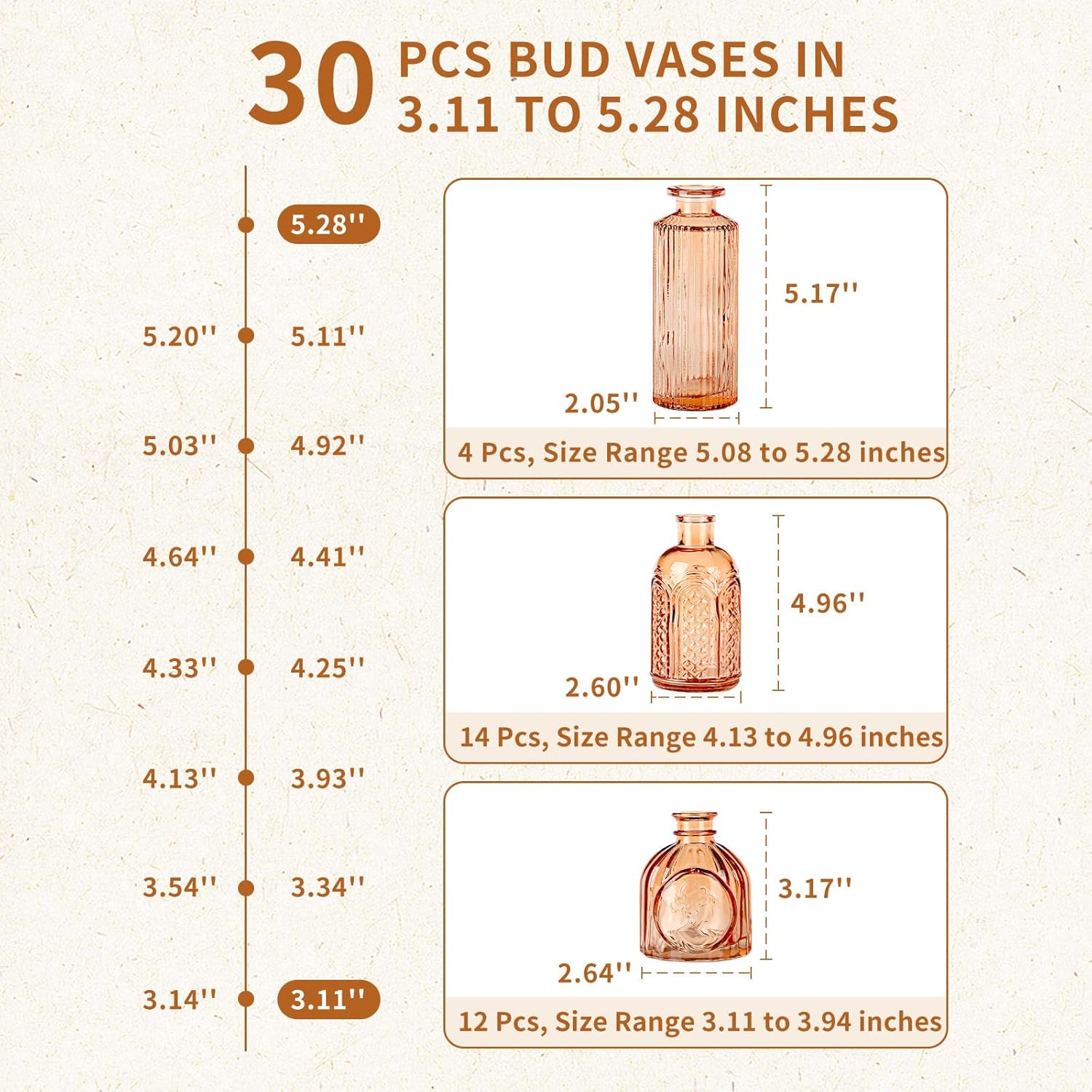 Valentine's Day Glass Bud Vases,Versatile Small Bud vases for Home and Wedding Decor, Exquisite Bridal Shower Table Centerpieces,Aromatherapy Bottles,Candle Holder, Gifts Idea(Pack of 30,Amber)