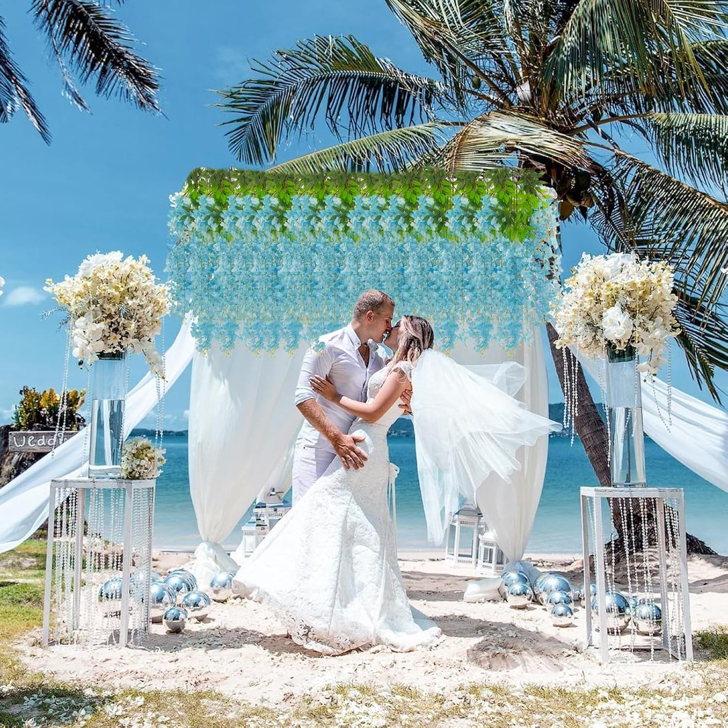 24 Pack Lake Blue Wisteria Hanging Flowers, 3.4 Ft Fake Hanging Flowers, Artificial Wisteria Garland Vines for Wedding Room Backdrop Outdoor Patio Garden Decoration