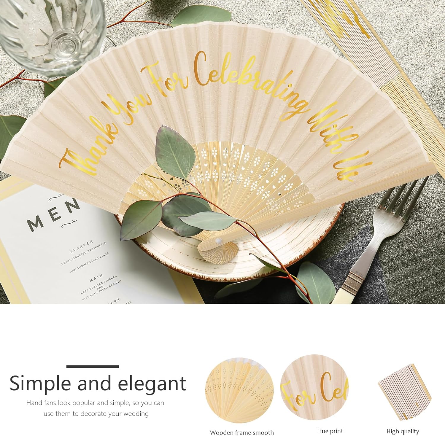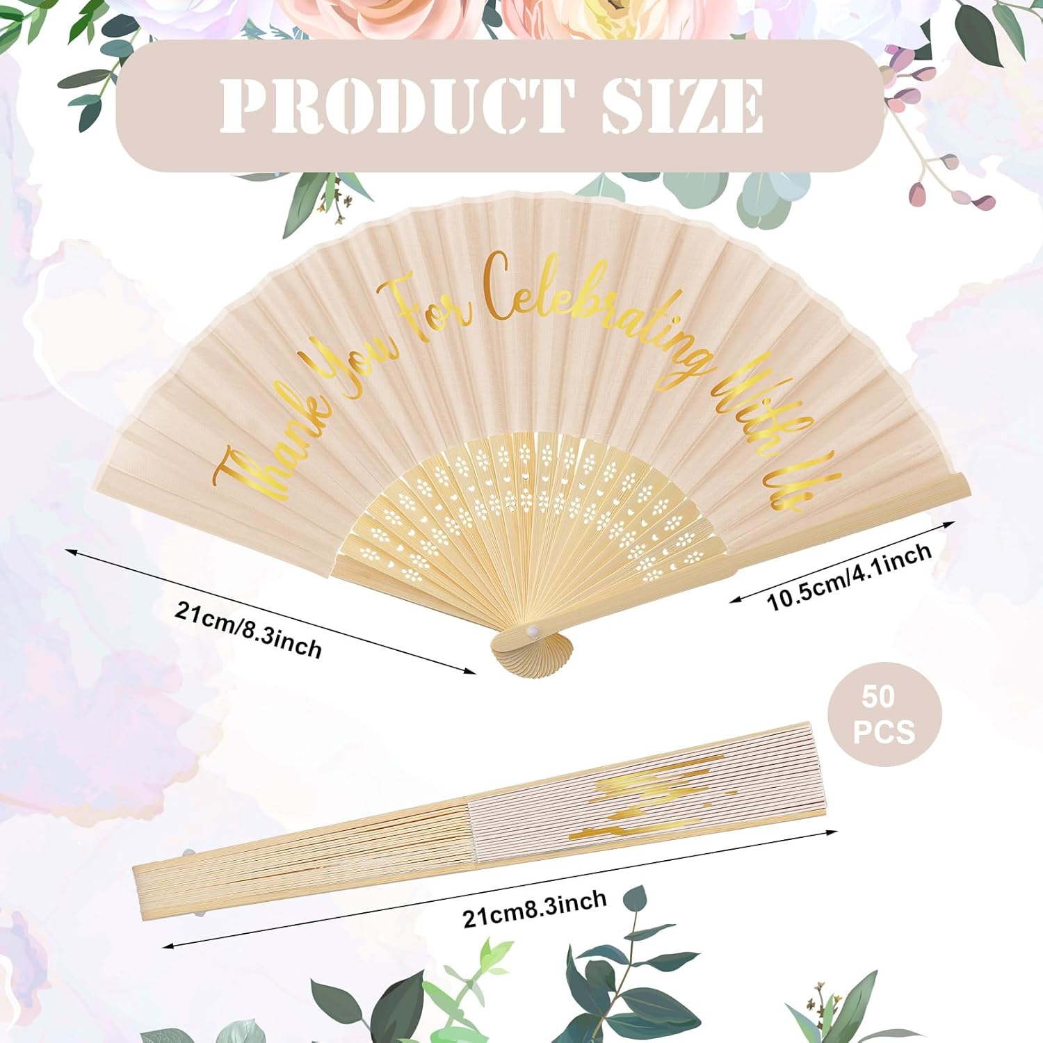 • Sufficient in Quantity: you will receive 50 pieces folding fans hand held, each printed with the text [ Thanks for Celebrating with Us] , which are sure to be well received by guests as quality gifts for them; These wedding folding fans will also cool everyone off at a summer party