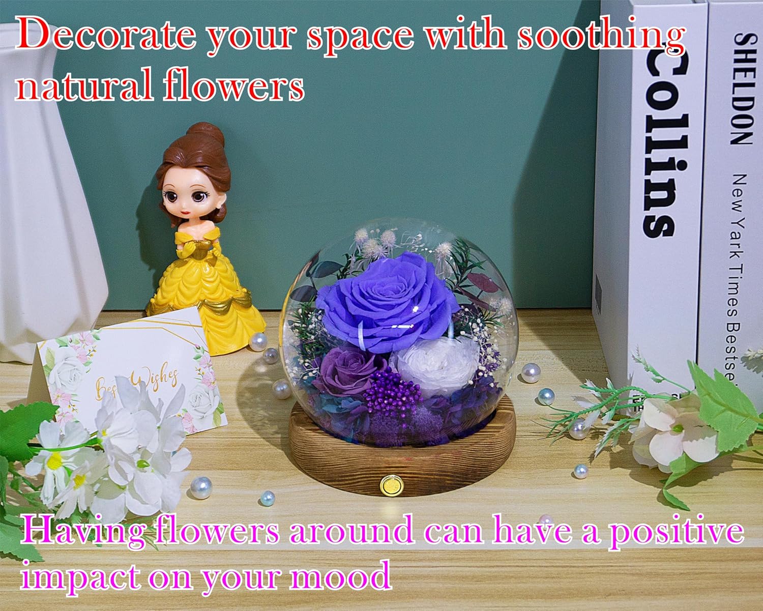 • ♥Please note♥:1. Due to the delicateness of natural flowers, opening the glass dome is not recommended as it can lead to unintended damage to the flowers. 2. Since these are real flowers crafted by hand and not mass-produced by machine, there may be slight variations in certain cases. 3. loose and incorrect battery insert will result in lights not turning on. If that's the case, simply remove the batteries and reinsert them correctly.