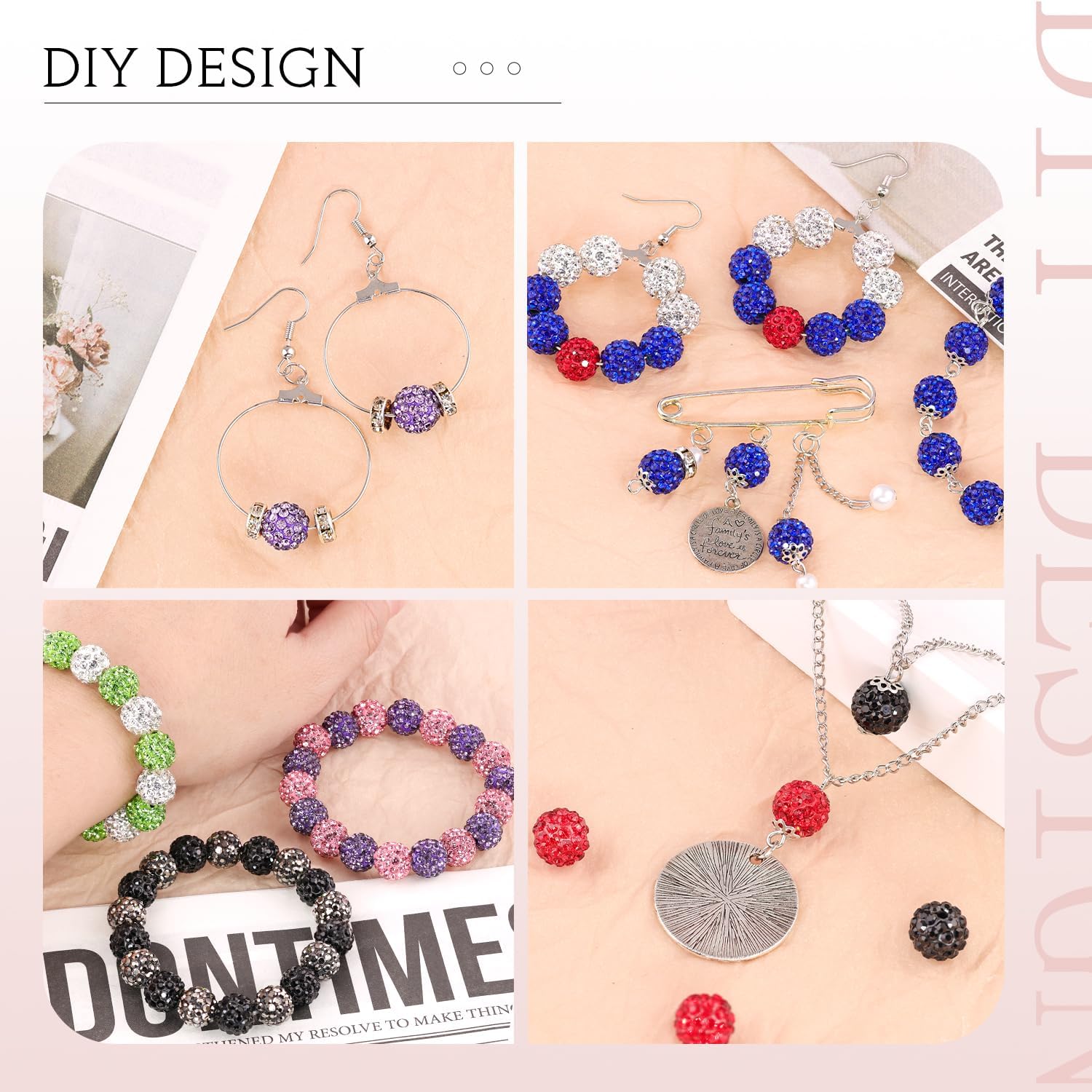 • WIDE USAGE -- Perfect for DIY Shamballa bracelets, necklaces, earrings, key-chains, pins, hair accessories and other jewelry making. Also suitable for decorating pendants, clothing accessories, ornaments and other decorations.