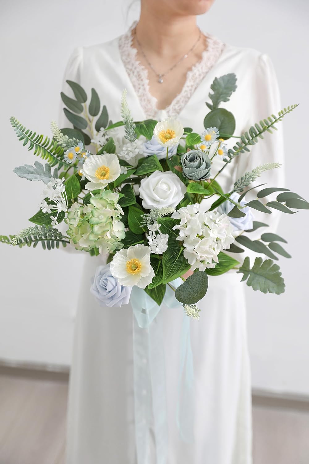 • Package Including:64pcs with 8 Kinds;Silver Dollar Eucalyptus leaves(2") x12,Miller Leaves x11,Willow leaves x10,white lavender x9,hydrangea x2,fern leaf x10,baby breath x7,Poppies Flowers x3,