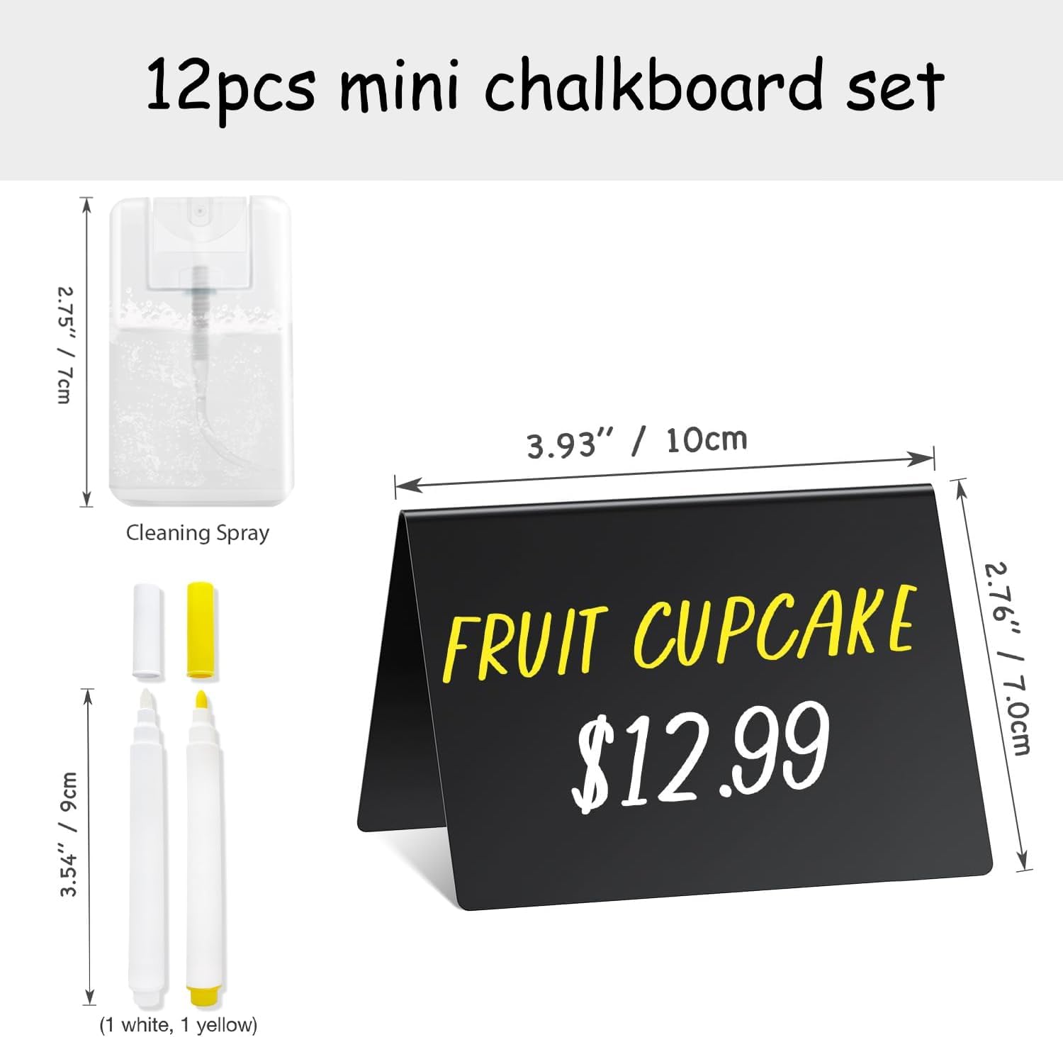 PigPotParty 4"x3" Mini Chalkboard Signs for Food, 12 Pcs Food Signs for Party Buffet, Small Chalk Board Food Labels, Table Place Cards, Wedding - Bakery - Birthday, Includes 2 Wet Erase Markers