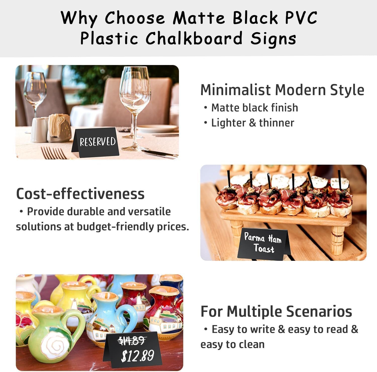 • Water and Smudge Resistant: Unlike paper cards, PVC plastic signs are water-resistant, preventing damage from spills and ensuring they maintain their appearance. The quick-drying ink prevents smudging, ensuring clear, vibrant messages throughout your event
