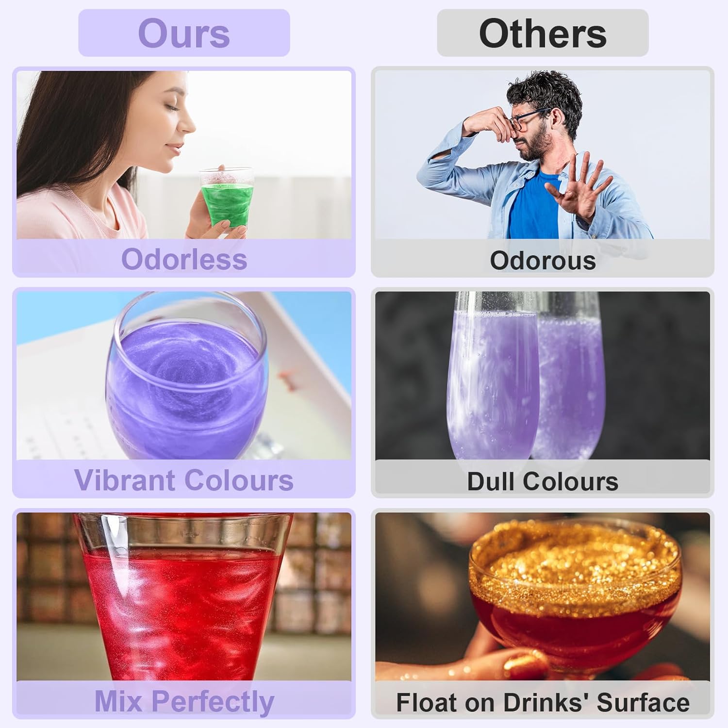 • SAFE & FOOD GRADE - The ingredients in the Edible Glitter set are food grade certified, non-fat, non-GMO, non-gluten, non-dairy, non-nut, non-toxic and will not alter the original taste of the food. Luster dust edible is a safe food for vegans and can also add the perfect finishing touch to your food.
