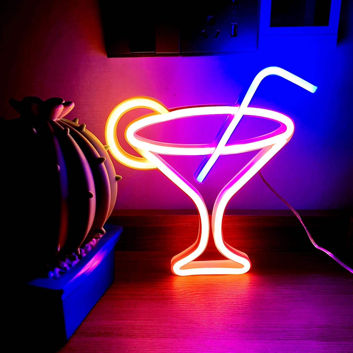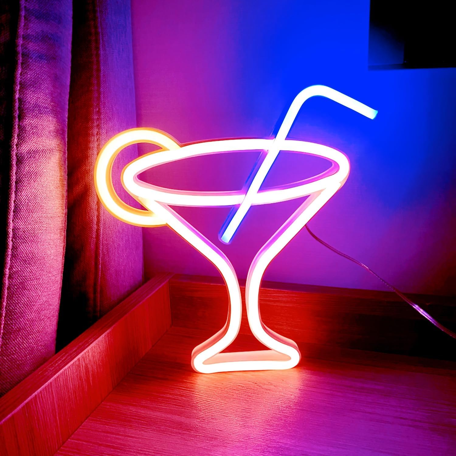 • 【 Unique and Creative Neon Sign】Cocktails neon sign Cleverlymatchs with bright pink,warm white,peach pink and blue color,looking very charming and attractive.Perfect decorative accessories for lighting up home pool party or bar cart.