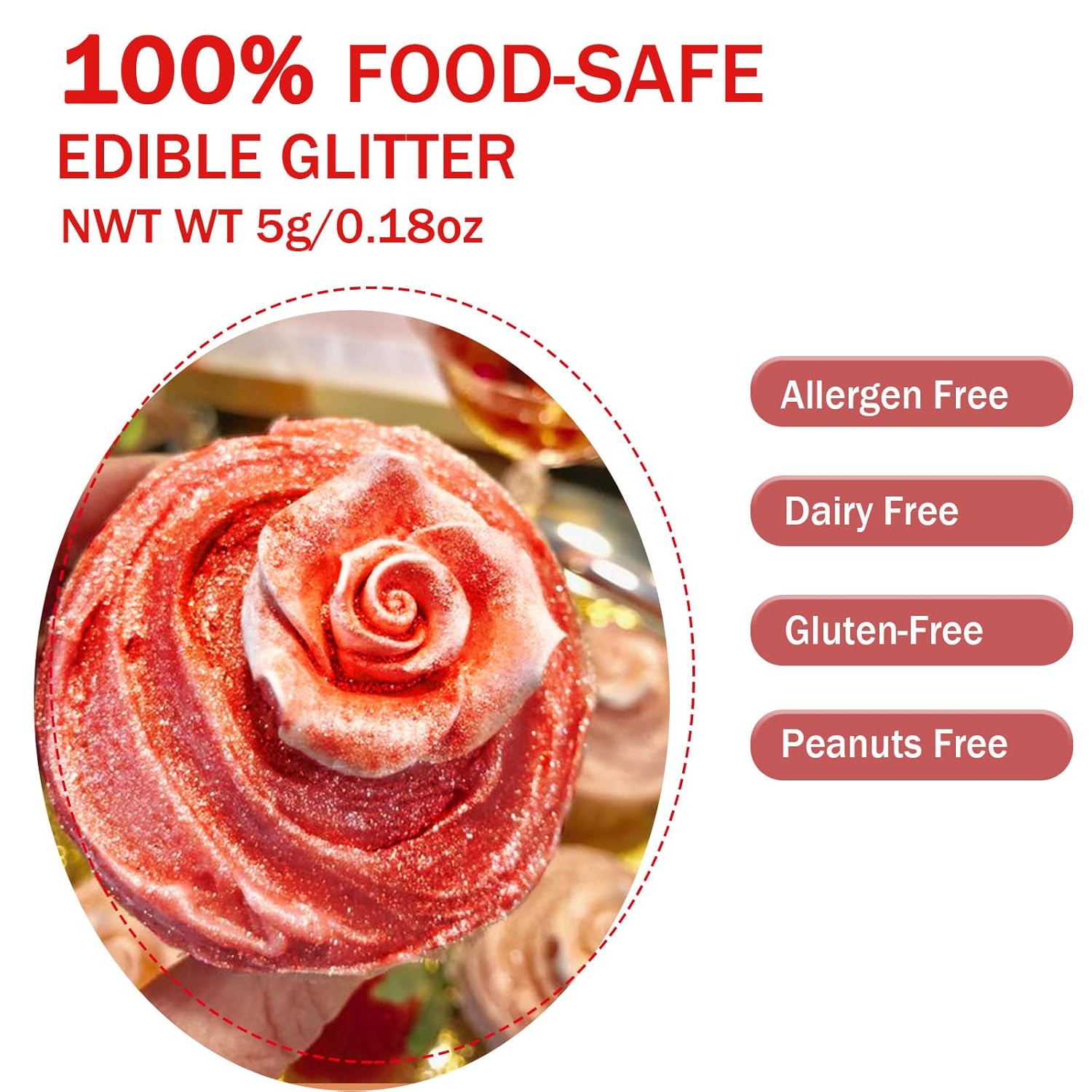 • Made of Premium Food Grade Material - 100% MSDS-certified food ingredients! Rose gold edible glitter for drinks, made of food grade mica powder imported from Germany and food coloring, no sugar or spices are added. Dairy-free, Gluten-free, Vegan Friendly, adults or kids can be safe to use.