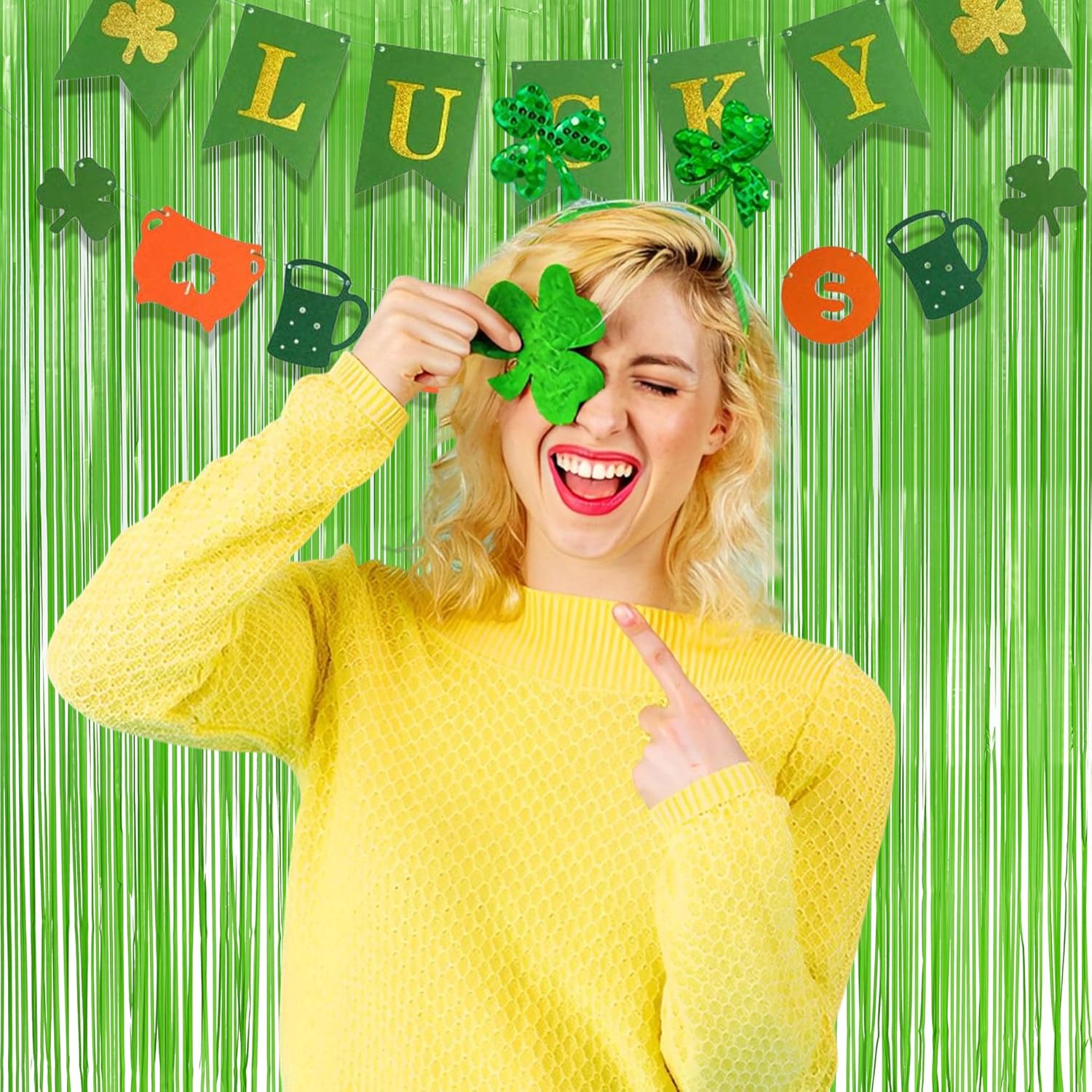 Lime Green Streamers Party Backdrop - GREATRIL Tinsel Curtain for St Patrick's Day/Frog/Wizard - 3.2ft X 8.2ft - 2 Packs