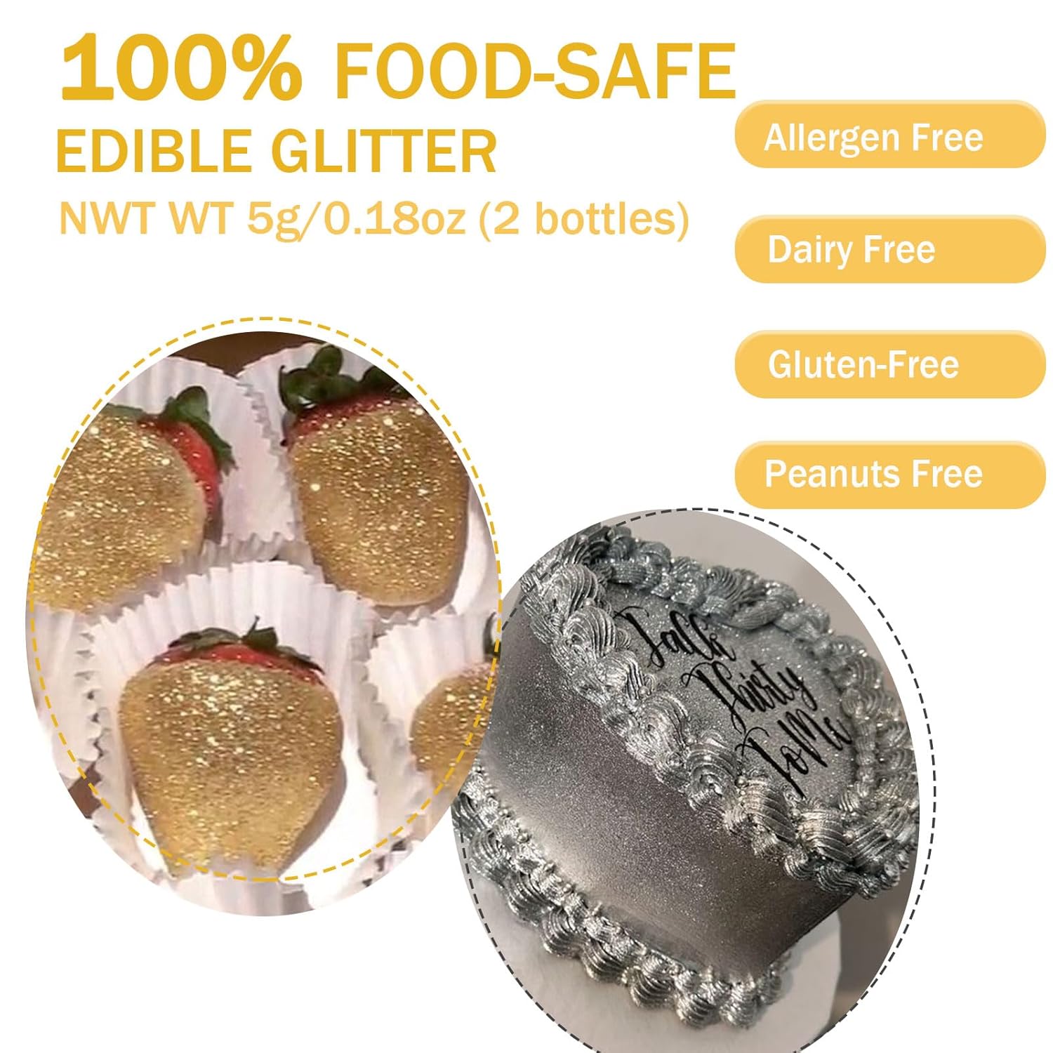 • 2 Edible Glitter Dust Colors Are Available - Includes: Gold, Silver, 5 Grams Each Jar. It is an ideal choice set for holidays, Halloween, Christmas, Wedding, and more special day to decor.