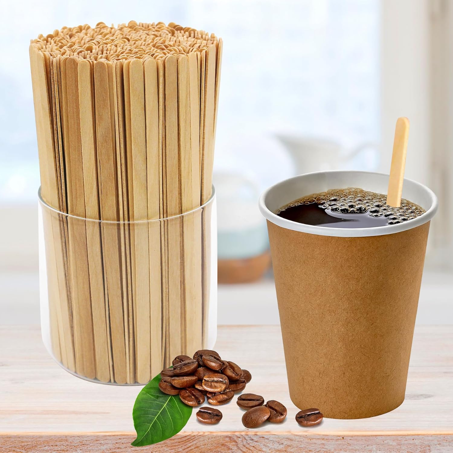 Sugormek1000PCS 5.5 IN Wooden Coffee Stirrers, A+Level Smooth Rounded Edges Disposable Coffee Stir Stick, Wooden Stir Stick for Coffee Cocktail Coffee Bar Accessories DIY Craft Design
