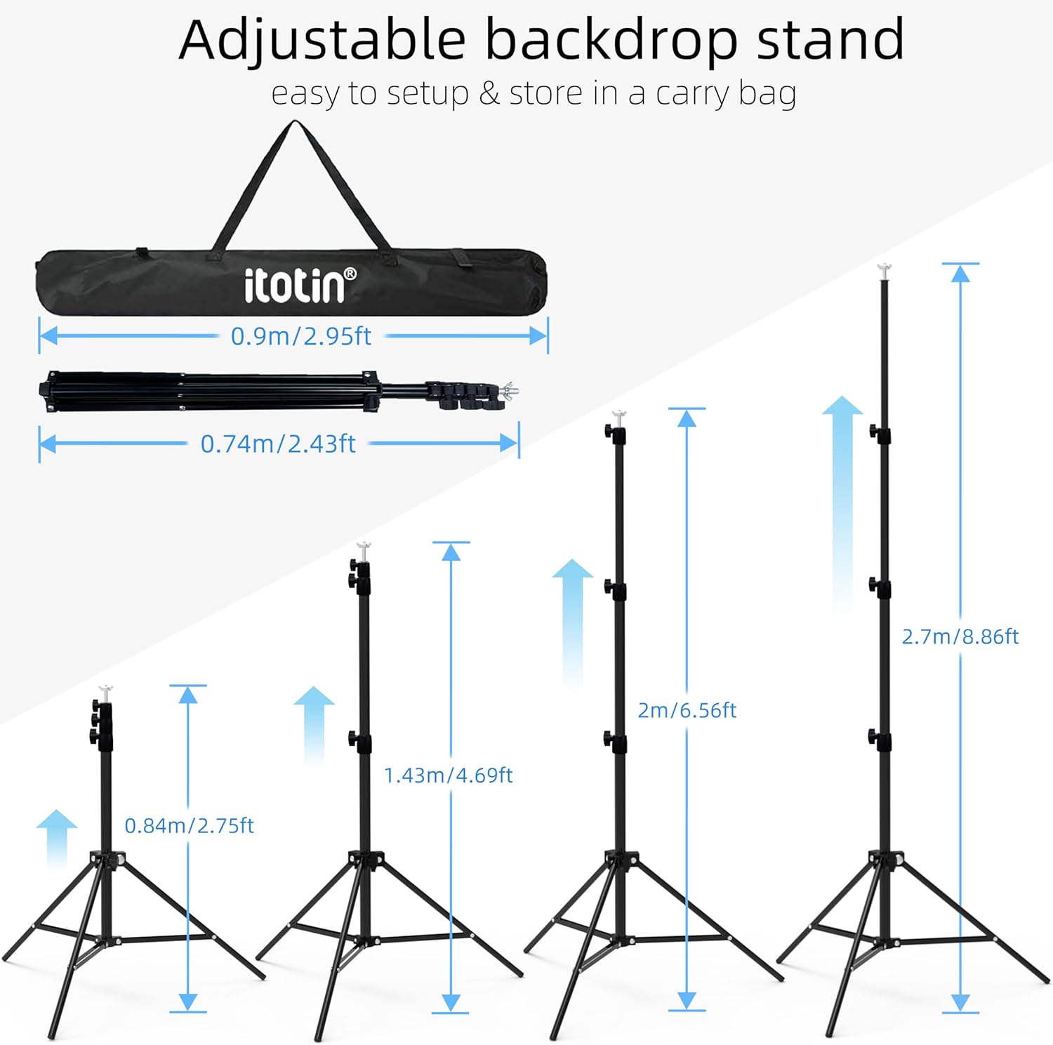 • 【Adjustable Stand for Backdrop】The height of the background stand is adjustable from 2.7 feet to 9 feet. The crossbar is retractable and freely adjustable in width, it can be adjusted up to 3 metres/10 feet. You can adjust the width to suit different sizes of backdrops.