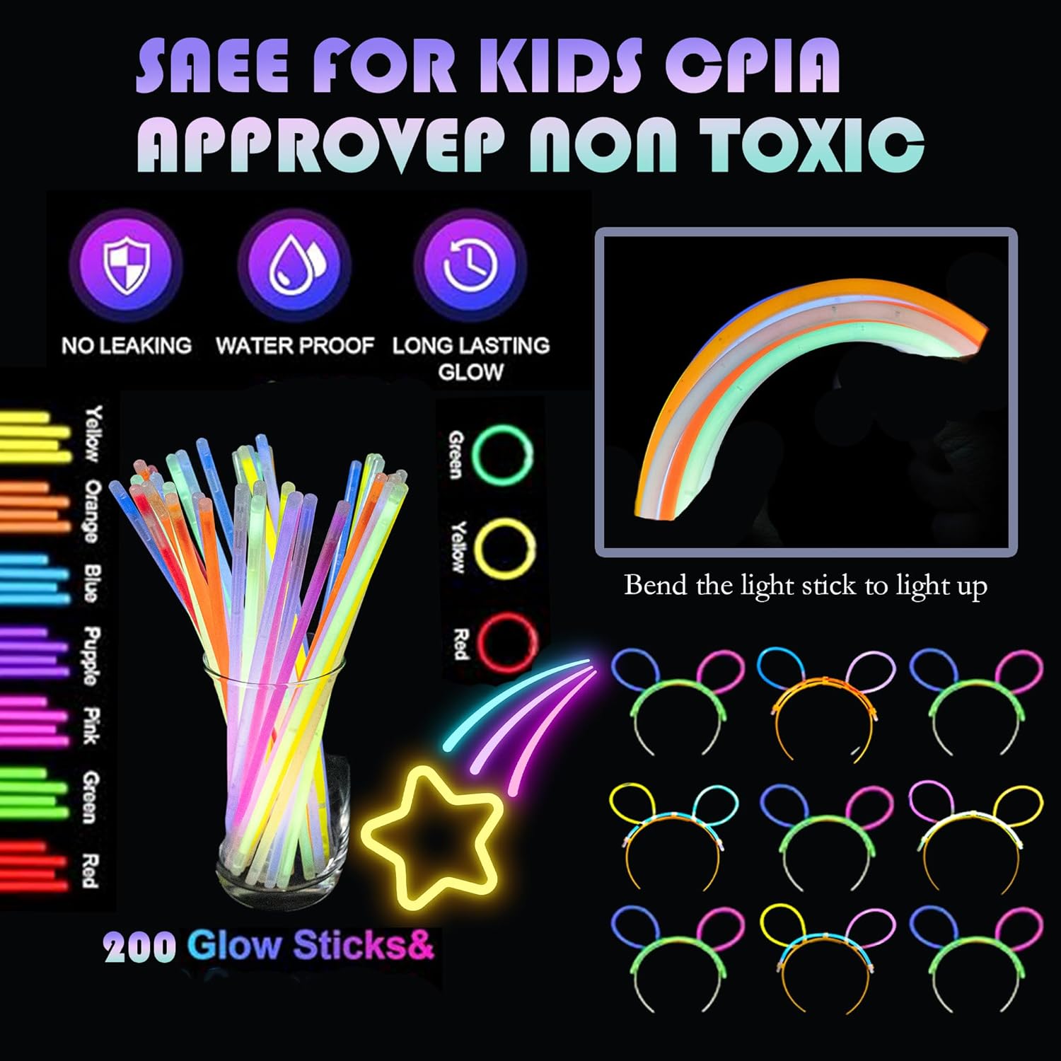 • ✅Excellent Safety and Quality: These colorful LED party favors are made of high-quality, lead-free plastic and conform to the highest safety and quality standards. They can withstand stretching, twisting, and turning due to their durable, thick, and resilient materials. Their sturdy design makes them less likely to break and leak compared to similar products on the market.