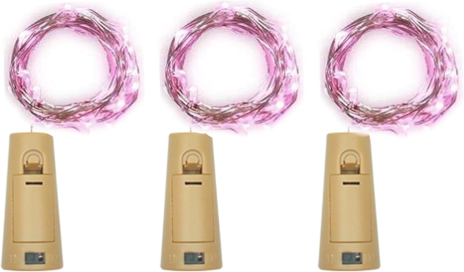 Wine Bottle Lights with Cork, Battery Operated 20 LED Cork Shape Silver Wire Colorful Fairy Mini String Lights(No Bottles) for DIY, Party, Decor, Christmas, Halloween,Wedding (3, Pink)