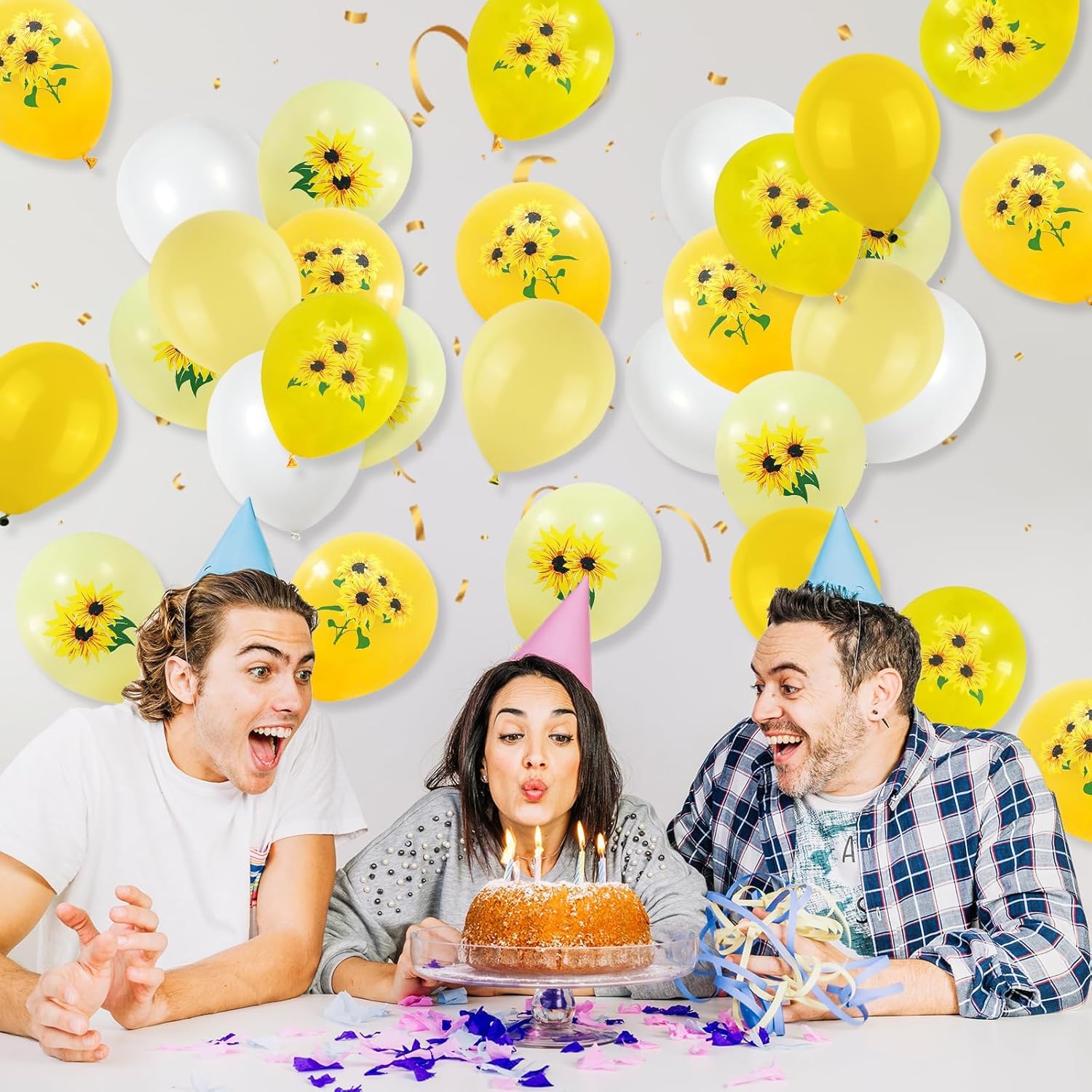 • 12 Inch sunflower balloons: Package content includes 15 pcs sunflower balloons, 5 pcs yellow balloons, 5 pcs pastel yellow balloons,5 pcs white balloons, a balloon ribbon.The color combination meets all your party imagination.